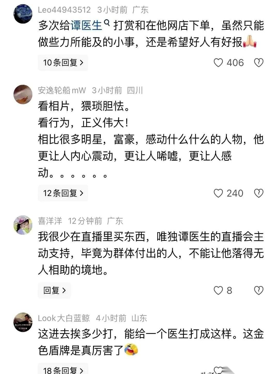 刷到谭医生在带货,心里咯噔一下。 尿毒症。 一个救死扶伤一辈子的人,最后被一场病逼到了这个份上。 总觉得医生是个无比体面的职业,穿着白大褂,拿着手术刀,跟“窘迫”这两个字,隔着十万八千里。 可生活就是这么个玩意儿,它从不按剧本演。尿毒症这三个字,背后就是个烧钱的无底洞,再厚的家底也经不起这么耗。 有人说“沦落”,说“唏嘘”。 我倒不觉得。 他没有躺在病床上抱怨命运不公,没有举着二维码求人可怜。他只是把手术台换成了直播间,用一种新的方式,堂堂正正地赚钱自救。 这不叫沦落,这叫战斗。 一个医生,一辈子都在跟死神抢人。现在,他开始为自己抢时间,抢活下去的资本。 这比我们绝大多数人都体面多了。 什么都不说了,希望谭医生好好的。