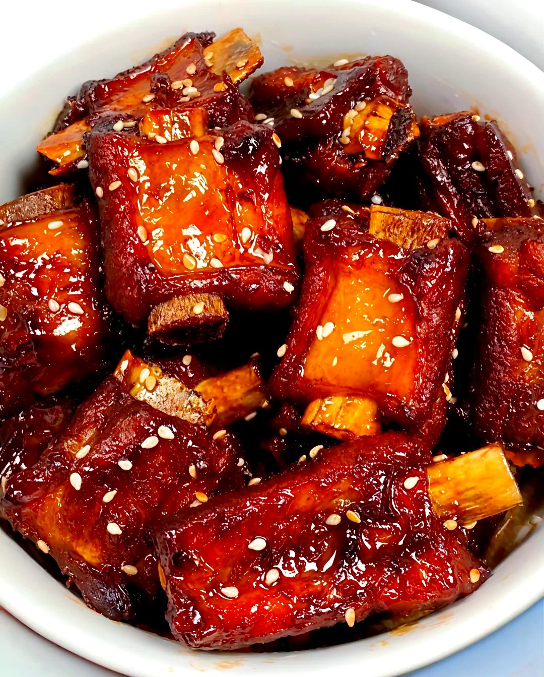 酱香排骨大揭秘!一口咬下,香得你停不下来! 嘿,吃货们!今天我要给大家带来一款让人一试就上瘾的家常佳肴——酱香排骨!是不是听起来就很有食欲?没错,这可是我经过无数次试验、调配出来的“秘密武器”,保证让你一口咬下,香味直冲脑门,停不下来!别眨眼,跟我一起走进这场酱香盛宴吧! 先说说选料。做出好吃的排骨,第一步当然是选料啦!我推荐用带点肥瘦相间的排骨,肉质鲜嫩多汁,骨头也能带点胶质,吃起来更有嚼劲。买的时候,记得让店家帮忙剁成适合炒制的块状,不要太大也不要太小,大小均匀,炒起来才会入味均匀。 接下来是腌制环节。排骨洗净后,用料酒、生抽、老抽、少许白胡椒粉、糖、盐腌制至少半小时,最好放冰箱里腌个1小时,让肉更加入味。这里的小技巧是加入一点点五香粉或是八角粉,能增加层次感,让味道更丰富。 进入炒制环节,锅热油,先将排骨煎至两面金黄,外酥里嫩,然后盛出备用。锅里留底油,加入葱姜蒜爆香,香味一出来,整个厨房都弥漫着幸福的味道。接着,倒入事先调好的酱料——我喜欢用甜面酱、豆瓣酱、老抽和少许糖,比例大概是:甜面酱2勺,豆瓣酱1勺,老抽1勺,糖适量,调出浓郁酱香。 这里的关键在于“酱料的调配”。我建议大家可以根据自己口味调整甜咸度,但一定要记住,酱香的精髓在于酱料的浓郁和香气的融合。加入酱料后,小火慢炖,让排骨充分吸收酱汁的味道,大约炖个20分钟左右,期间可以不时翻动,确保每一块排骨都能均匀裹上浓郁的酱汁。 炖到快收汁的时候,火可以稍微大一点,让酱汁浓稠,挂在排骨上,油亮亮的,看着就忍不住想咬一口!这时候,加入一点点白芝麻和葱花点缀,香气更上一层楼。 当然啦,吃的时候别忘了配上一碗白米饭,热腾腾的米饭一夹,酱香排骨的浓郁味道瞬间爆发,简直是人间美味!咬上一口,肉质鲜嫩多汁,酱香浓郁,甜咸适中,层次丰富,嘴里满是幸福感。每一口都能感受到厨师的用心和调料的魔力,真的是让人欲罢不能。 总结一下,做酱香排骨其实很简单,但要做好,关键在于调料的比例和火候的掌握。只要你用心去炒、去炖,保证你家厨房也能飘出餐厅级别的香味。相信我,这道酱香排骨绝对会成为你家餐桌上的“明星菜”,每次做完都能引来家人朋友的赞叹声。 好了,今天的酱香排骨大揭秘就到这里啦!喜欢的话,记得点赞、转发,让更多的吃货朋友一起享受这份美味!下次我还会带来更多家常又美味的菜谱,咱们下期见啦!吃得开心,吃得满足,才是生活的真谛!香香蒜香排骨 山药酱香排骨