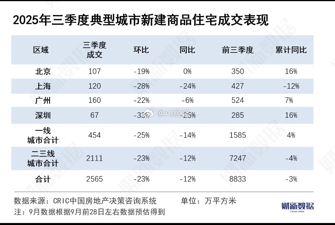 2025年三季度典型城市新建商品住宅成交表现