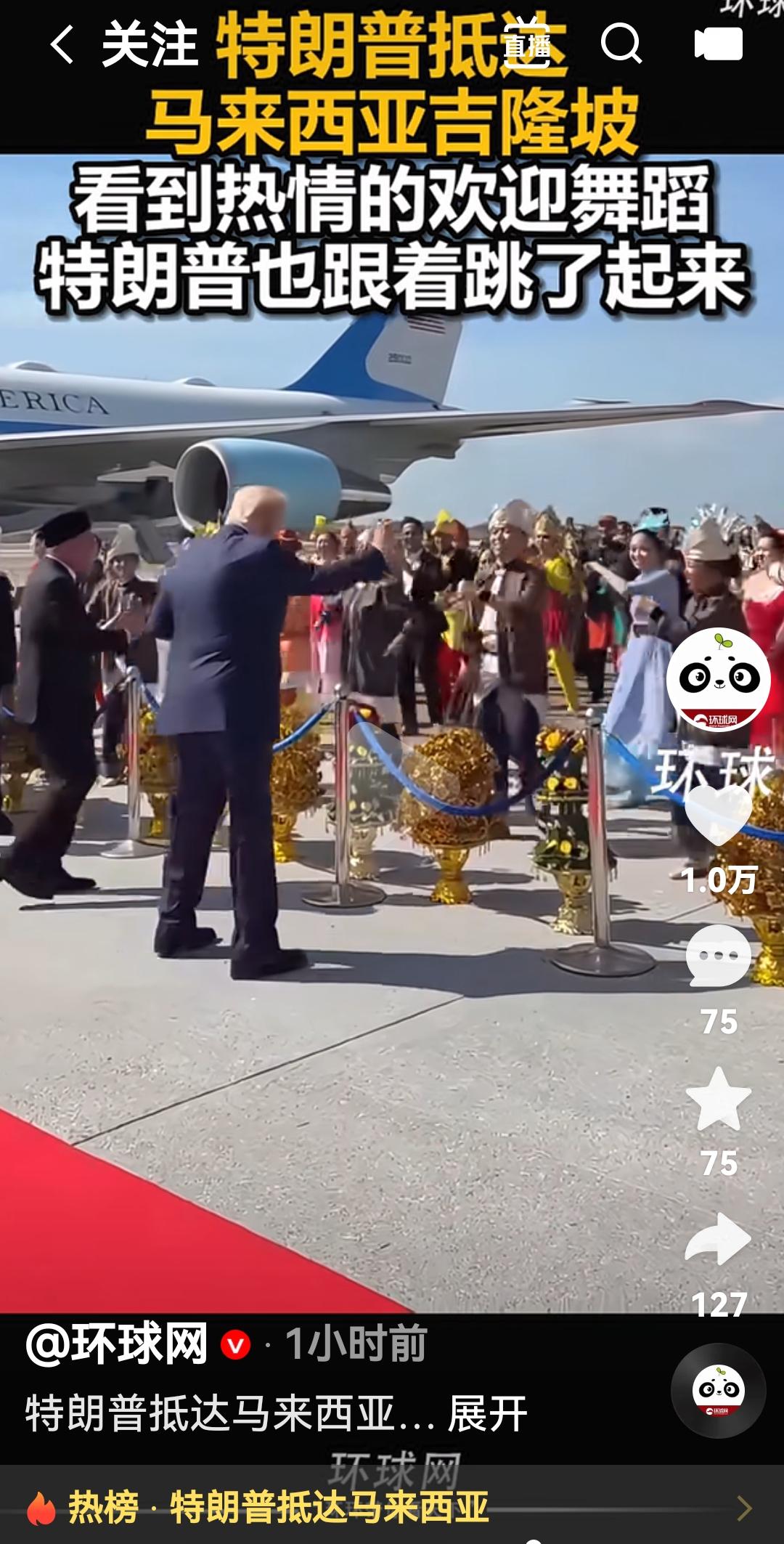 特朗普到达马来西亚吉隆坡由于欢迎太热烈,在机场开始跳舞了 根据媒体报道,10月25日美国总统特朗普已经到东南亚开始为期一星期亚洲3个国家的访问 26日特朗普到达马来西亚吉隆坡,马来西亚总理安华在机场安排了热烈欢迎仪式,特朗普也跟着跳起舞了,他说说估计到韩国就会这样欢迎我,他估计准备了臭鸡蛋 最近韩国举行了很大的反特朗普游行 估计在韩国特朗普不会这样跳舞 川普特朗普 特朗普碰壁 特朗普外访 图片来自环球网视频