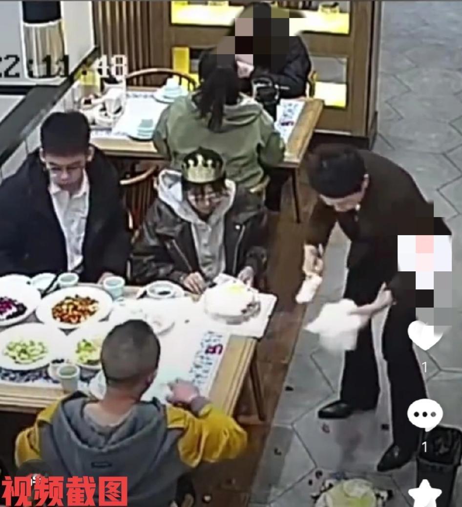 新疆有女孩过生日,吃饭时不慎手臂碰到桌边搁置的蛋糕。 这不很自然生日蛋糕被打翻落地。 当女孩一脸懵然,还在不知所措的时刻,此刻老板走过来是名阿姨,客气与女孩一行说到,你们安心吃饭,余下的事我来。 之后阿姨重新拿来了新的盘子,用刀把没有接触到地面的蛋糕分割开,看到蛋糕还是能挽留了一些,但此刻蛋糕恢复原样几乎不可能了,蛋糕上面还有好几粒水果散落也被阿姨捡了起来,看样子被阿姨拿到后厨重新清洗。 果然不假,阿姨过来拿来了些水果,说到添加一些水果还是尽量保持蛋糕完美,随后蛋糕被水果点缀到位又像是一个“新蛋糕”,女孩看到心也安静,以为结束了一次偶然的意外。 随后不久,阿姨竟然还赠送来长寿面给予女孩祝福,瞬间让一场意外的遗憾转化为温暖惊喜,这暖意的氛围令人舒坦,阿姨还温和说到,看把不好的丢掉,剩下的依然可以是美好的一餐,不要为打翻的蛋糕留下哭泣,不然会错过眼前的快乐,好一句暖心的话,女孩一行也是为感高兴。 一场带着遗憾的意外被完美谢幕,众人看到老板阿姨的温馨心意,弥补缺憾里面的空隙,让起伏安定,一切回归心情的快乐。