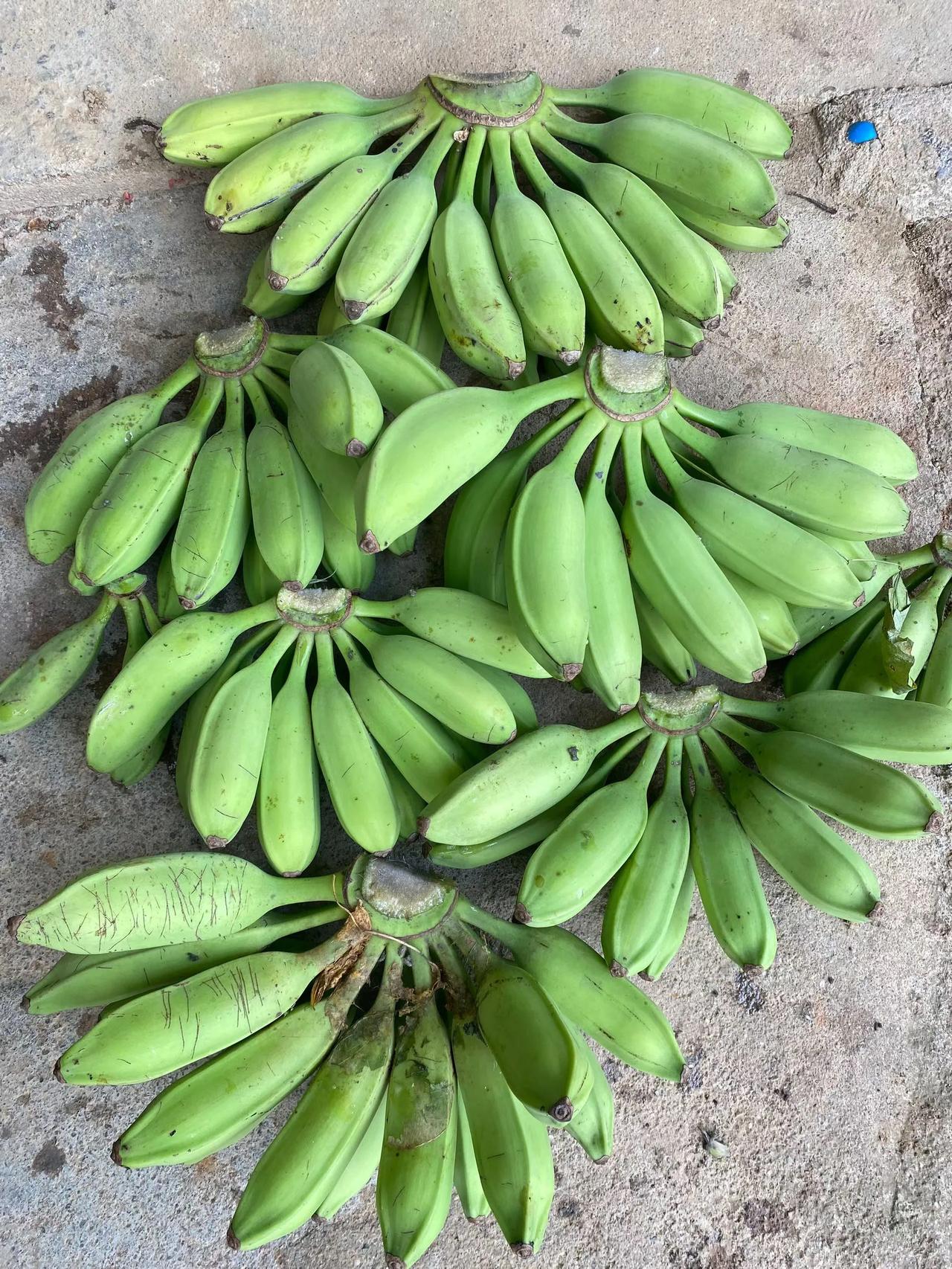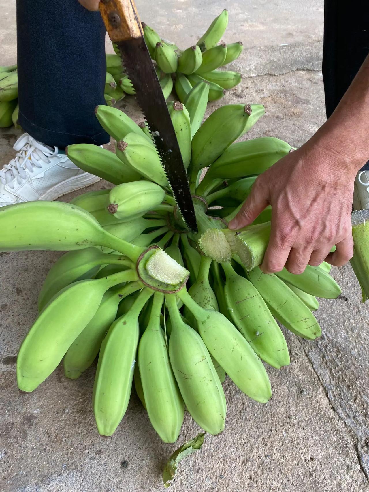 小时候经常去摘这种青香蕉下来 然后放在房子里等它自然熟 家里自己种比外面买的要好吃 今天又是摘了一大串 又能吃一段时间 天气越来越冷了 外边风很大 出去外面都得穿上一件厚厚的外套 今天摘的青香蕉是又大又饱满 那你家乡会种香蕉吗广东大蕉 吃粉蕉