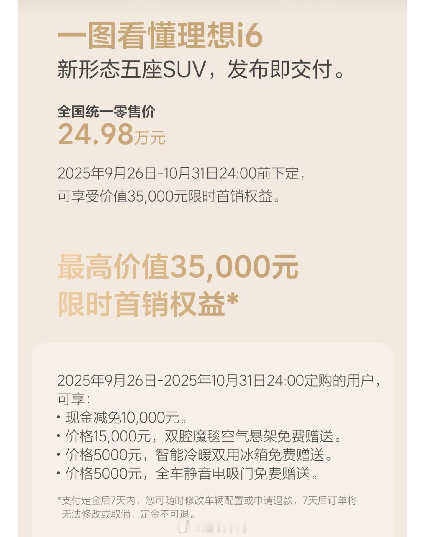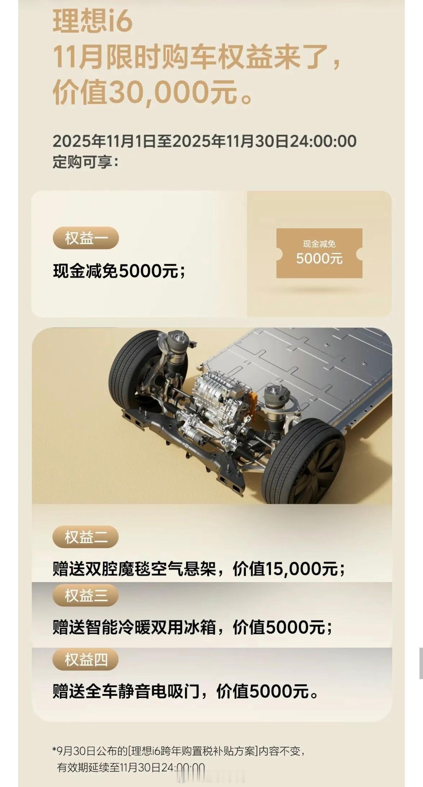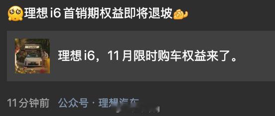 理想 i6 下个月的购车权益,与首发权益相比现金减免会少 5000(图2),有购车计划的朋友可以联系你的销售咨询了[666]新能源汽车理想i6