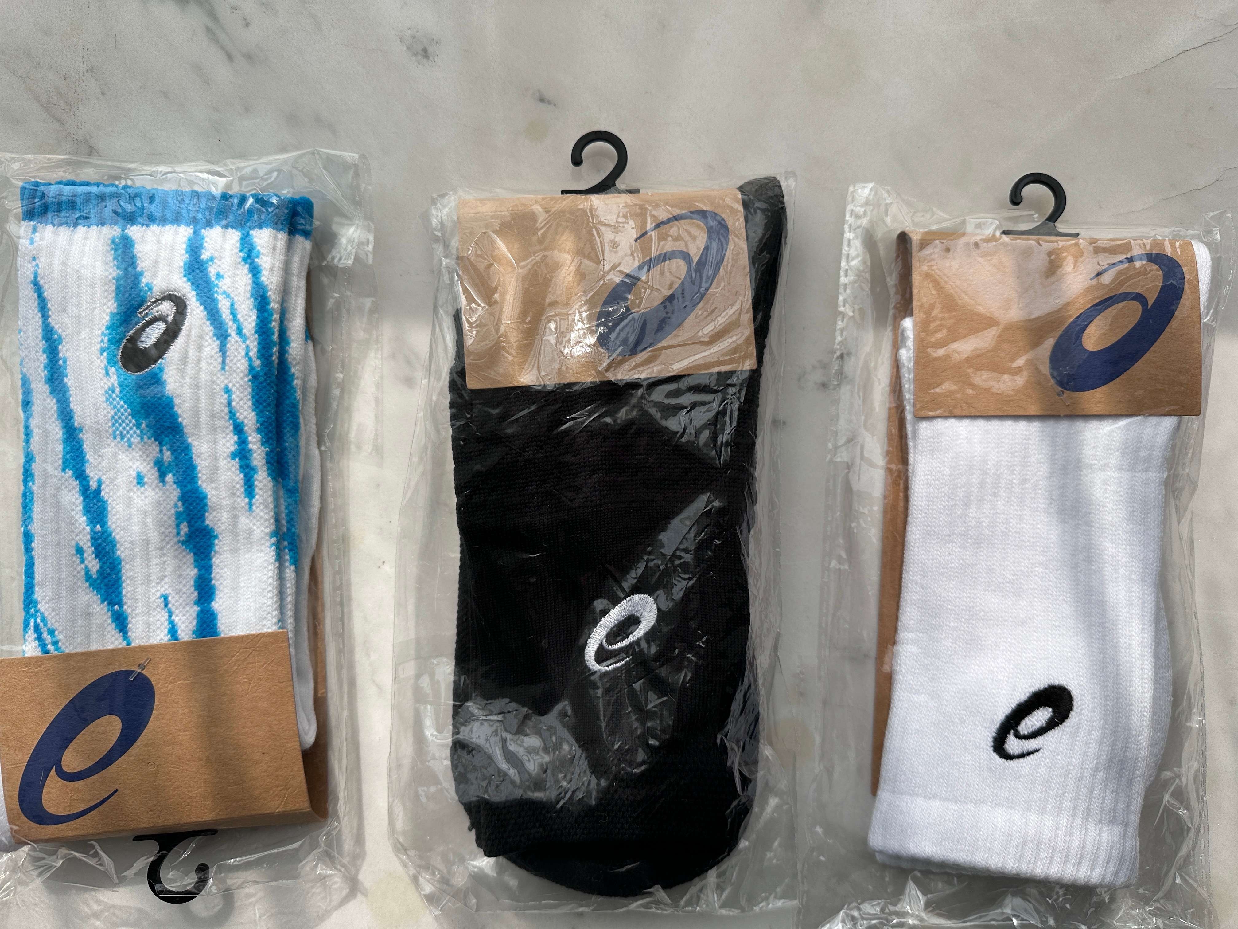 三件M码男式网球短袖上衣,湖蓝草绿香芋紫,配上三条短裤,三双袜子也是不同颜色的。可以为三位中奖者配出全身——鞋子自己买呦!当然休赛期抽奖浪潮中肯定还会有鞋[来]