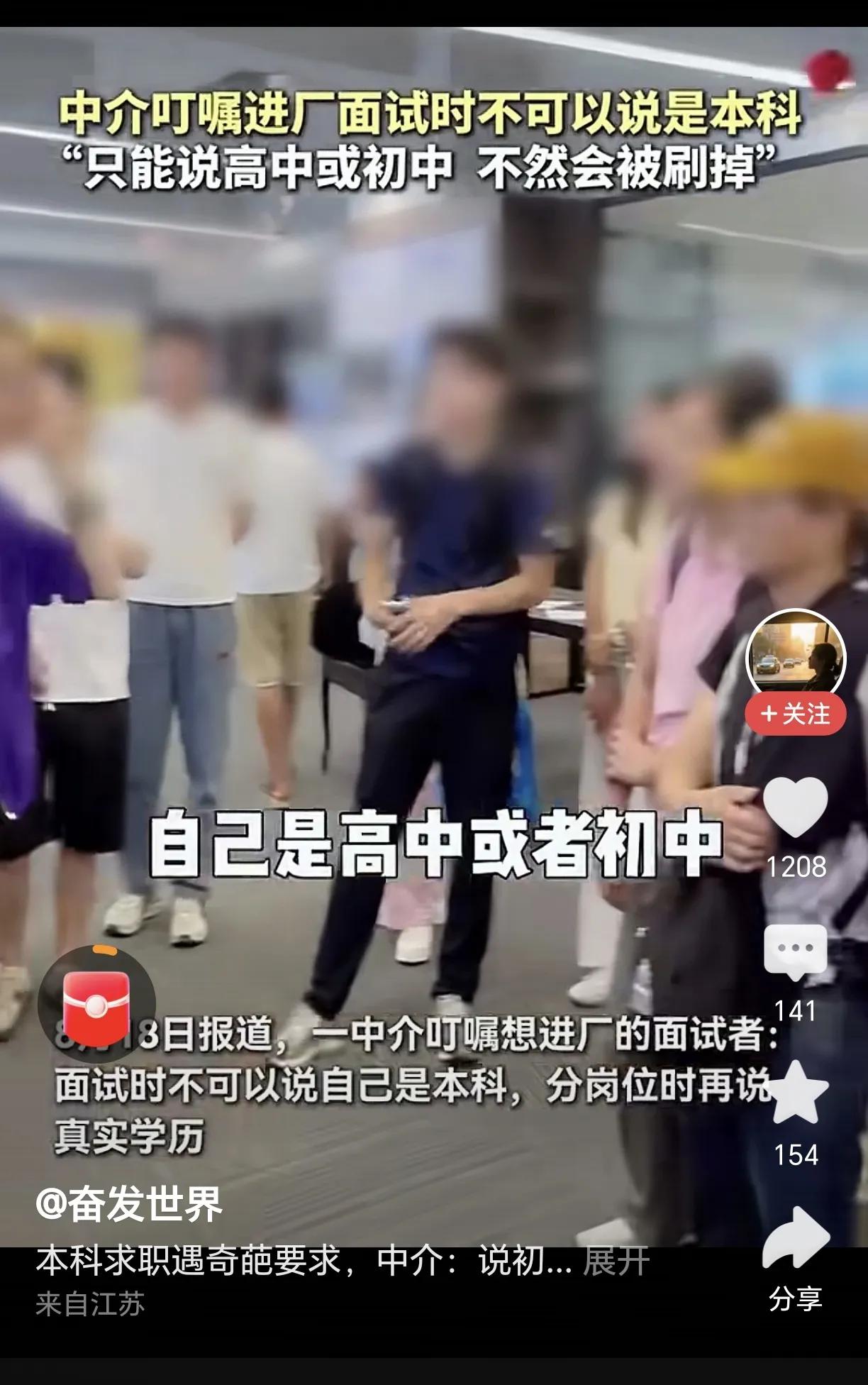 本科学历进厂打工都不行,会被刷掉。 必须要说自己是高中或者初中学历。就业市场的岗位、学历匹配真的好魔幻又严谨。 随着大学学费提高、读书成本上涨,未来贫困家庭最好的选择估计会变成不去读大学、高中或者中专毕业后直接进厂打工。 进厂工作 普通人进厂 进厂发展 进厂真相