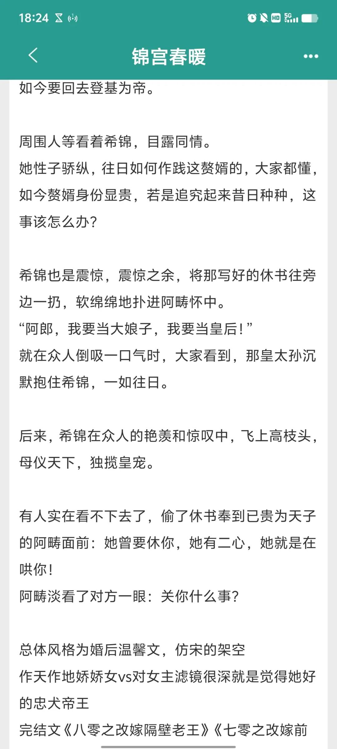 《锦宫春暖》by女王不在家 刚完结的新文,一共102章 骄纵商贾爱财女vs忠犬皇太孙赘婿