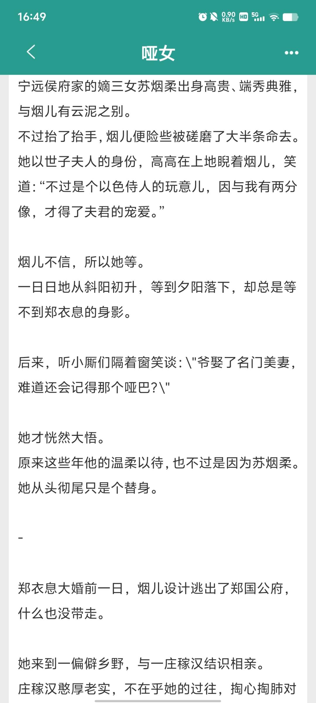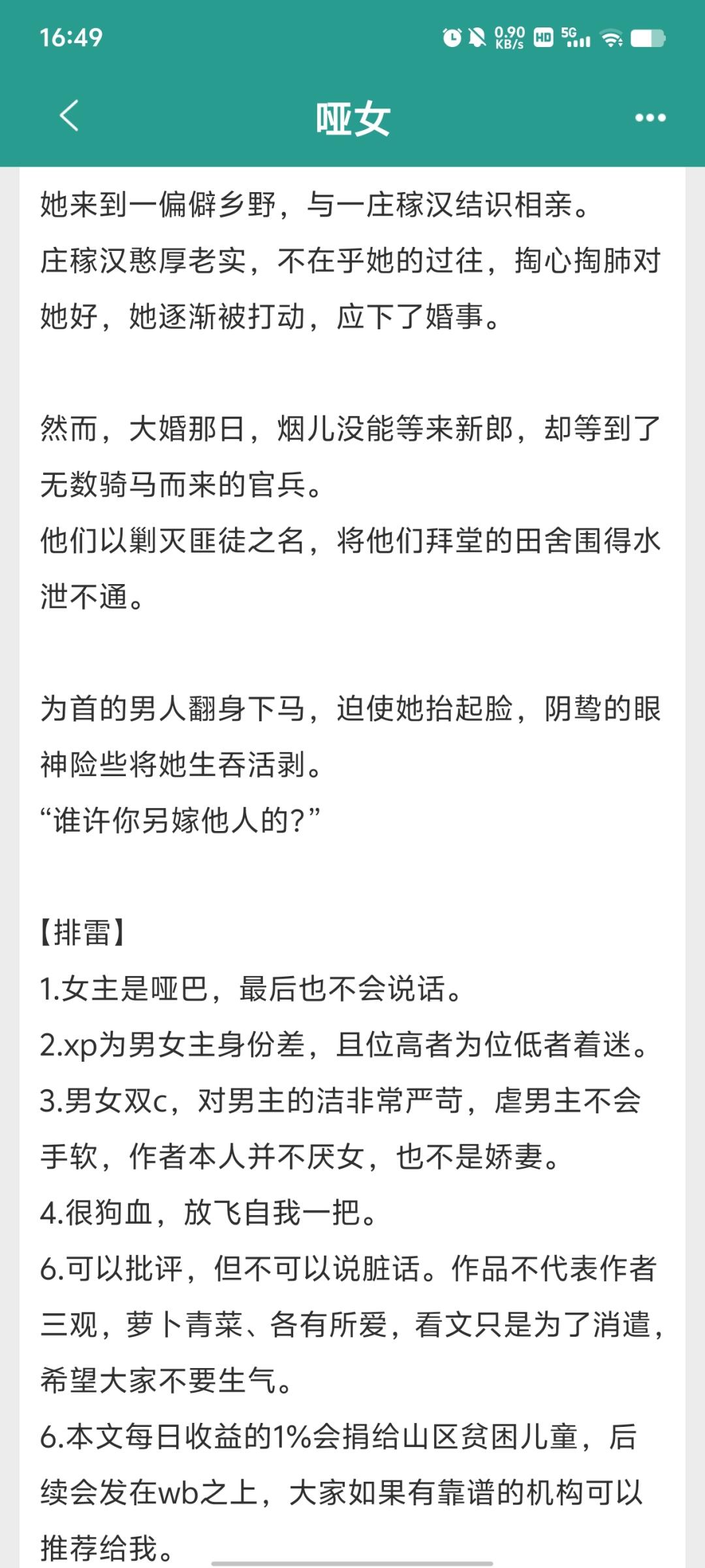 女主一出生就是哑巴,不会说话,身世凄惨,很小被卖,后来成了男主府上的,粗使丫鬟。