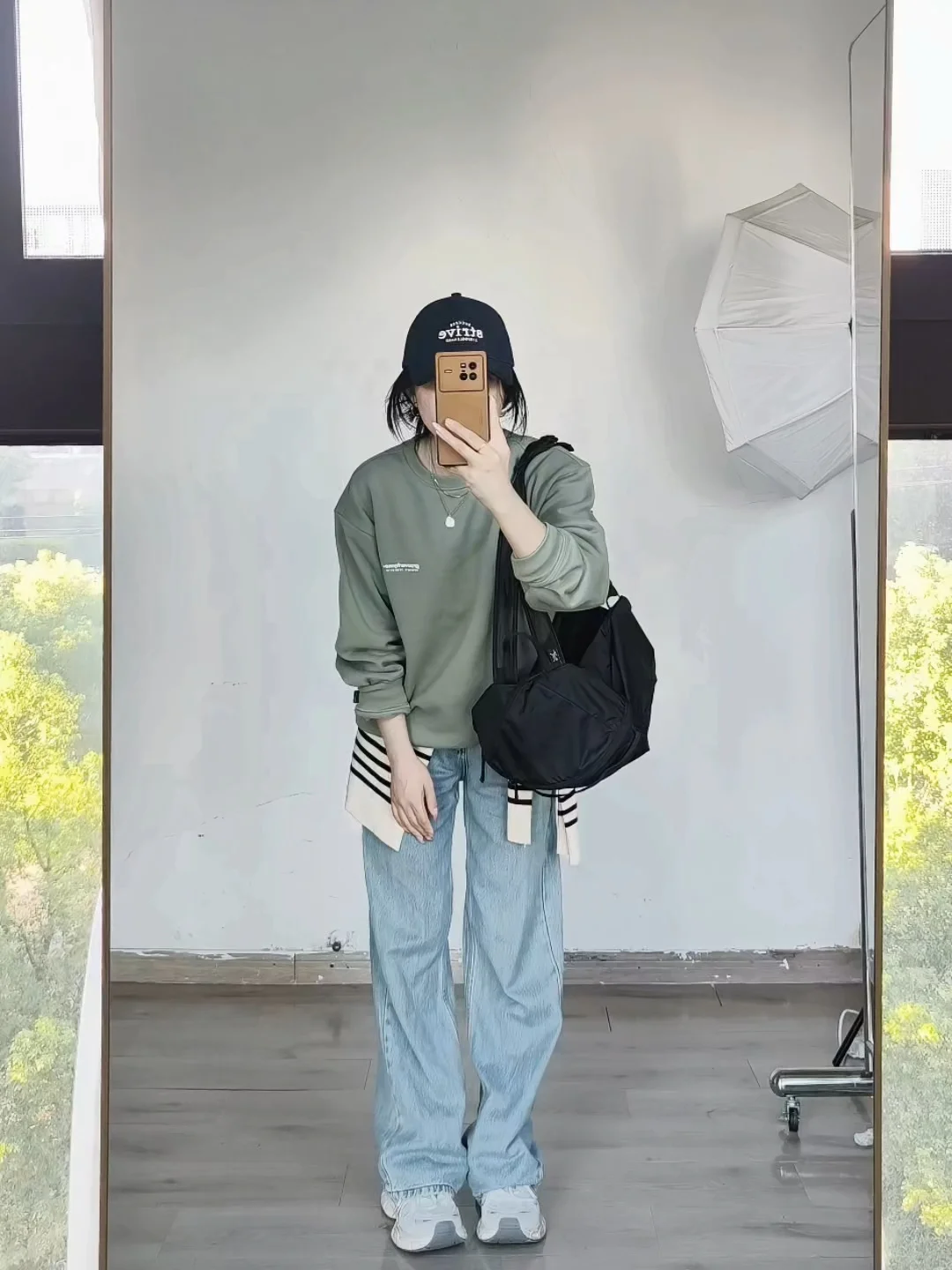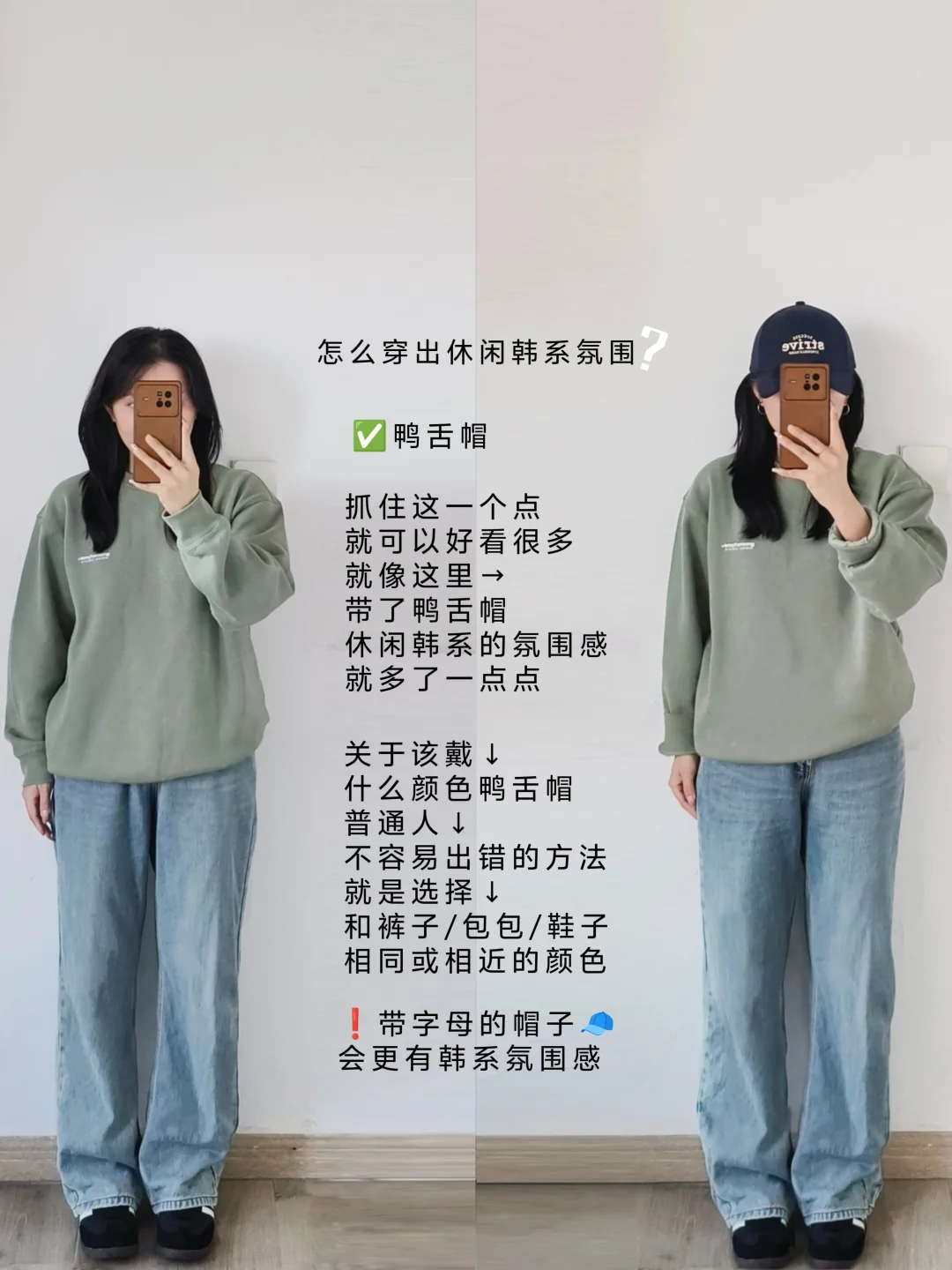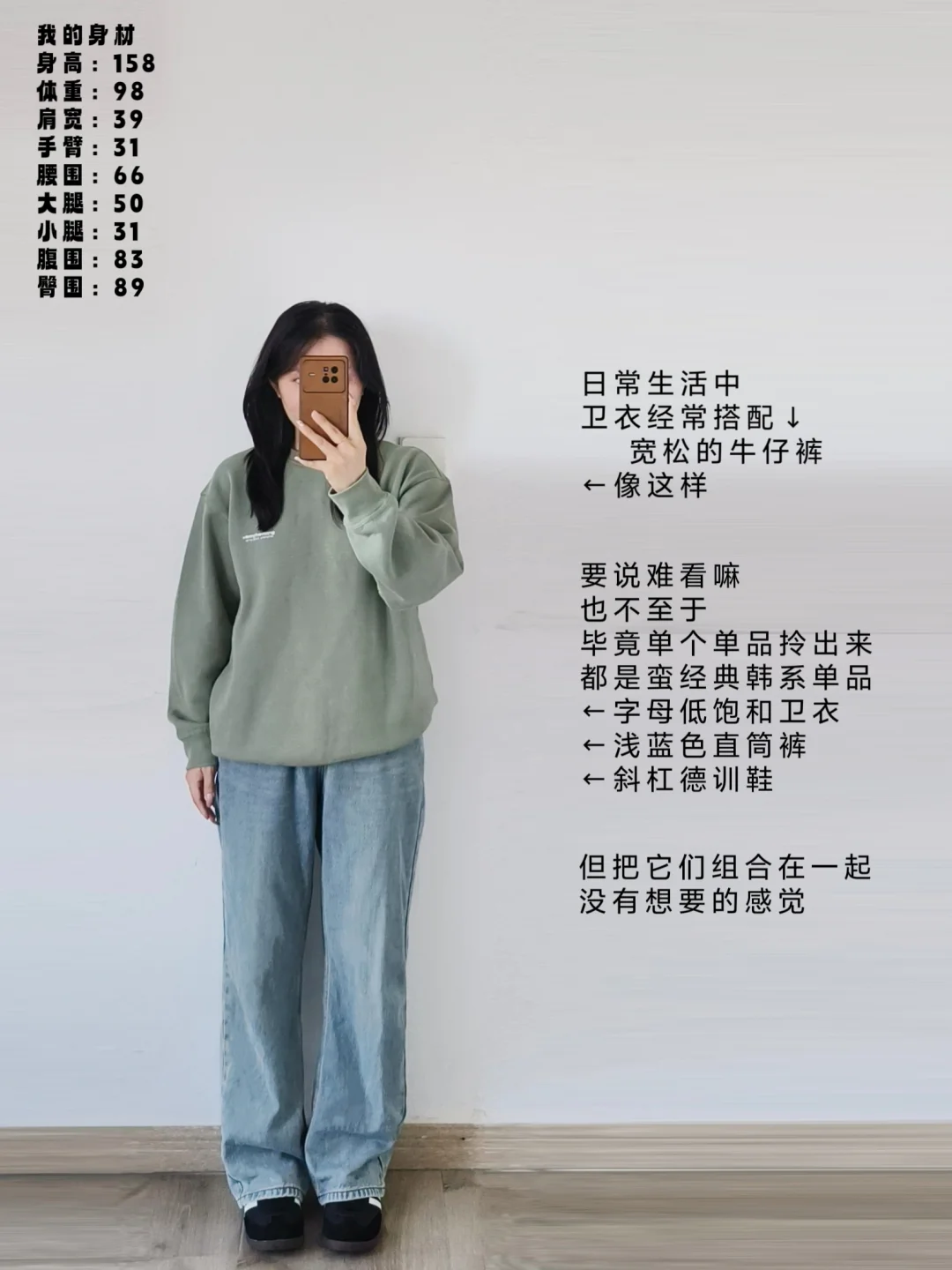 卫衣搭配蓝色宽松牛仔裤不是很休闲韩系的吗