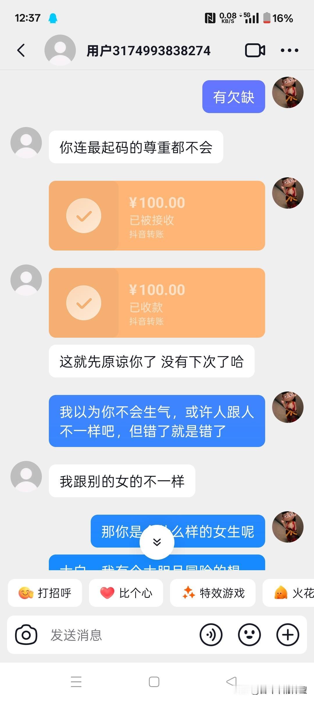 我真不适合谈恋爱,看来我要孤独终老了。每次抱着真诚的态度,真心的去交往,每次都被骗的一塌糊涂。损失点钱到无所谓,现在的中国女人都这样吗。不愿意跟别人交往,钱还收的理所当然。如今我真的明白了,作为男人不能做舔狗,舔狗舔狗,舔到最后一无所有。真诚的态度,真心的交往我不会改变,只怪我遇人不淑。 让这些骗男人钱财的女人,守一辈子寡。山东省枣庄市的蔡沙沙我记着你了。大家记住这个女的,山东省枣庄的蔡沙沙。 找对象感悟都说不找对象 被骗后的心得
