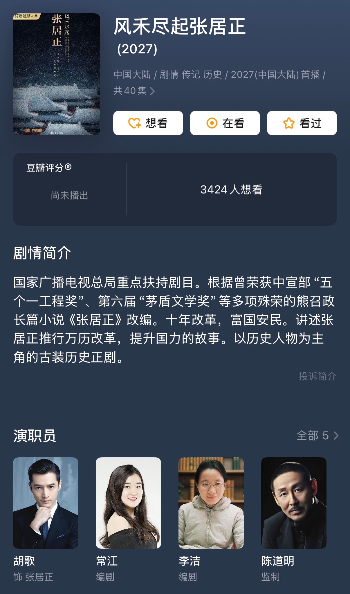 好期待,胡歌终于又开始演历史剧了,这次是张居正,这个项目还是重点扶持剧目,超级期待!!!张居正官宣胡歌胡歌琅琊榜之后首部古装剧