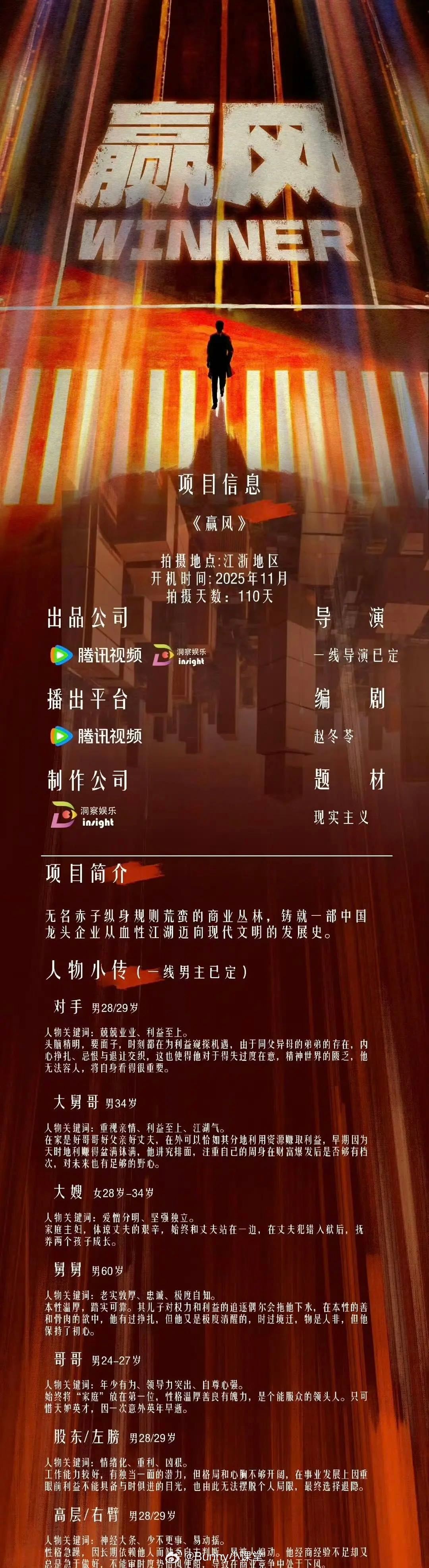 赢风官宣黄景瑜 腾讯大剧《赢风》阵容官宣,黄景瑜为领衔主演!年代大男主的创业成长过程,等不及想看了[拳头]