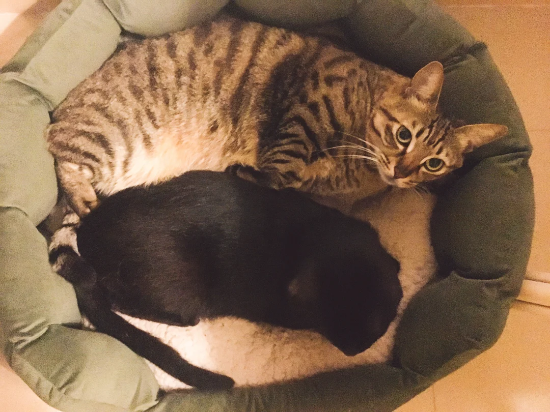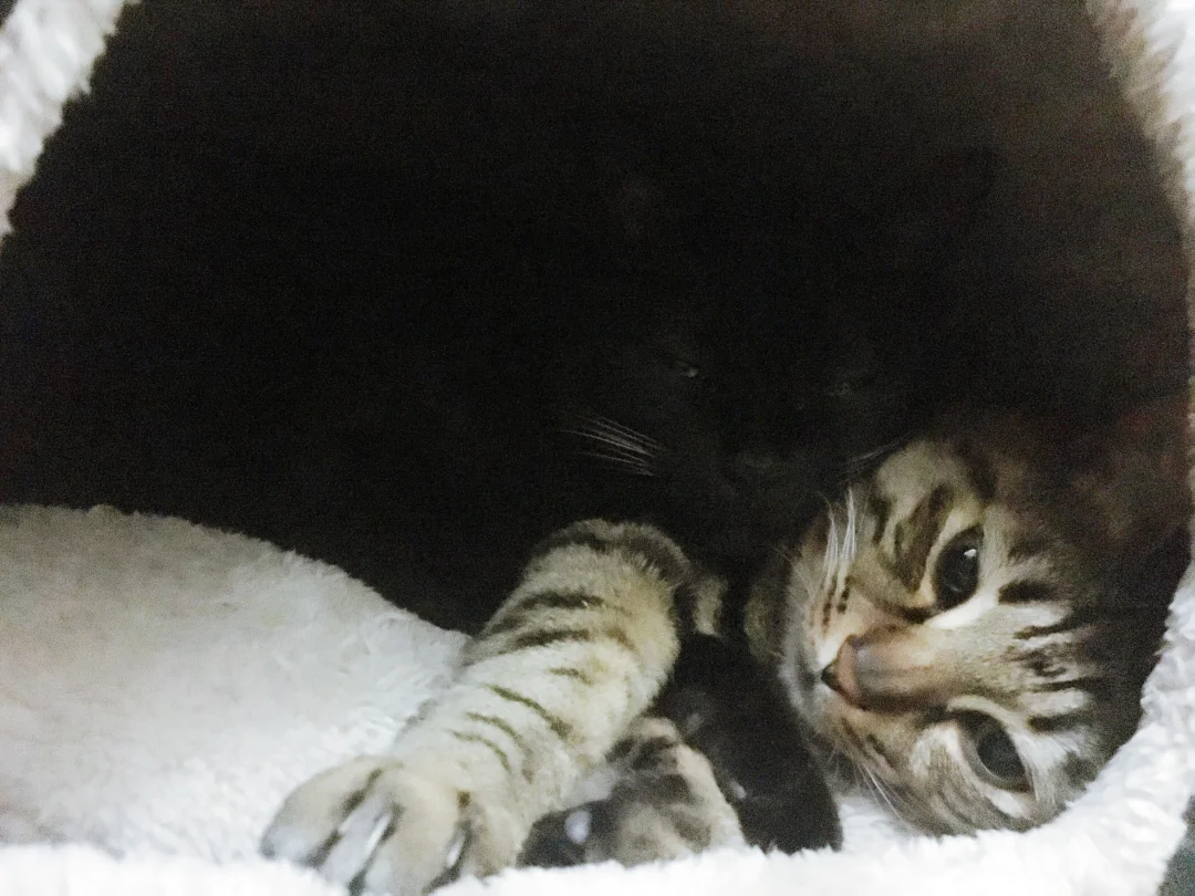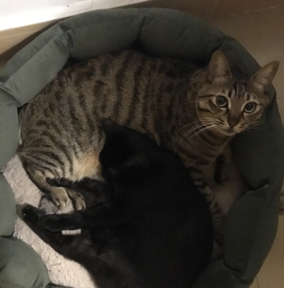一直相拥而眠的两只猫猫,互相陪伴了14年,今年9月份狸花猫宝宝回喵星了[哭惹R]降温后把冬天的窝窝拿了出来,我们家玄猫爷爷一直在闻窝上残留的味道,然后一直四处在找他的小伙伴,那画面真的看着看着眼泪就忍不住掉下来…他超级怕冷的,每年冬天都是抱着他的胖弟弟不撒手,今年只能给他24小时开电热毯了,希望他能适应胖弟弟不在的第一个冬天…[哭惹R][哭惹R][哭惹R]