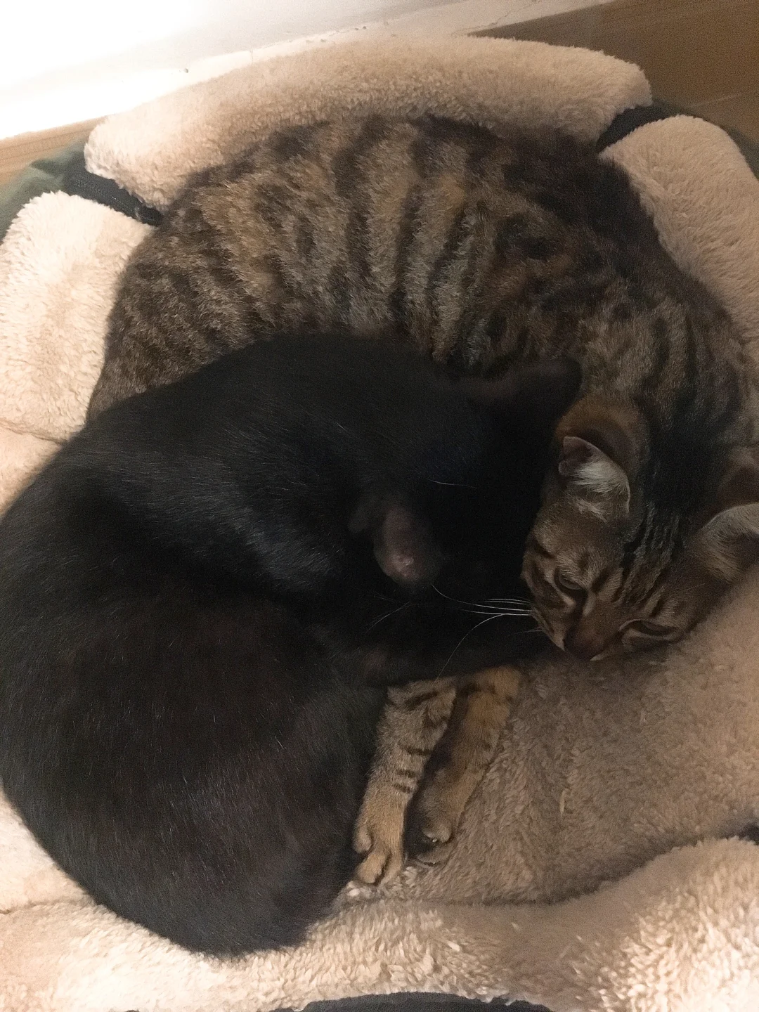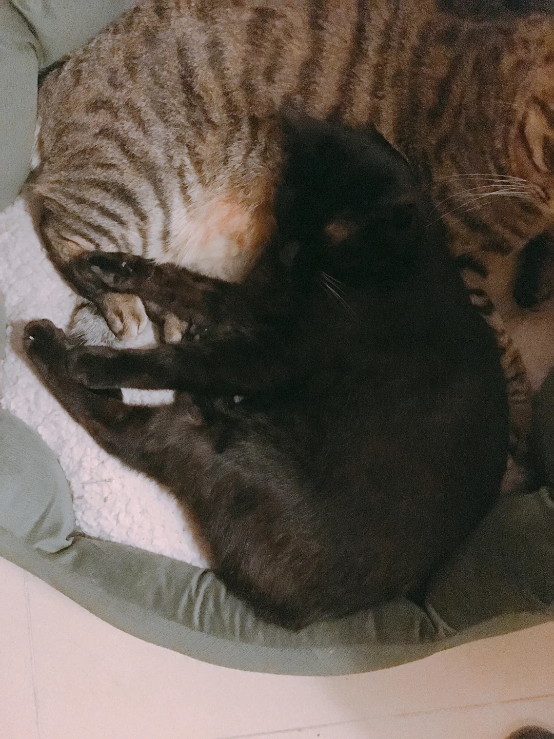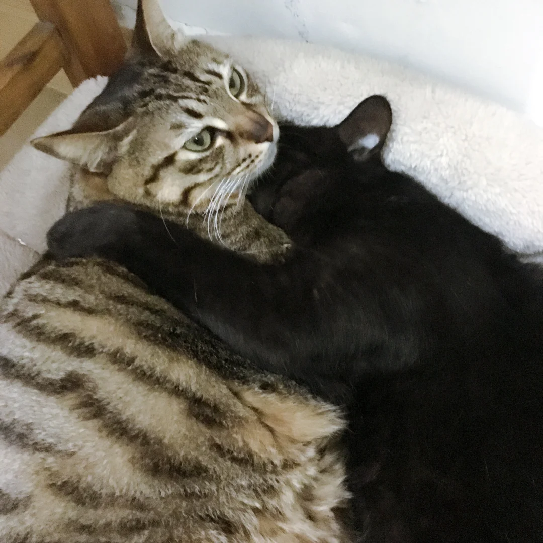 一直相拥而眠的两只猫猫,互相陪伴了14年,今年9月份狸花猫宝宝回喵星了[哭惹R]降温后把冬天的窝窝拿了出来,我们家玄猫爷爷一直在闻窝上残留的味道,然后一直四处在找他的小伙伴,那画面真的看着看着眼泪就忍不住掉下来…他超级怕冷的,每年冬天都是抱着他的胖弟弟不撒手,今年只能给他24小时开电热毯了,希望他能适应胖弟弟不在的第一个冬天…[哭惹R][哭惹R][哭惹R]