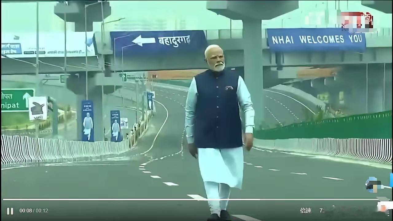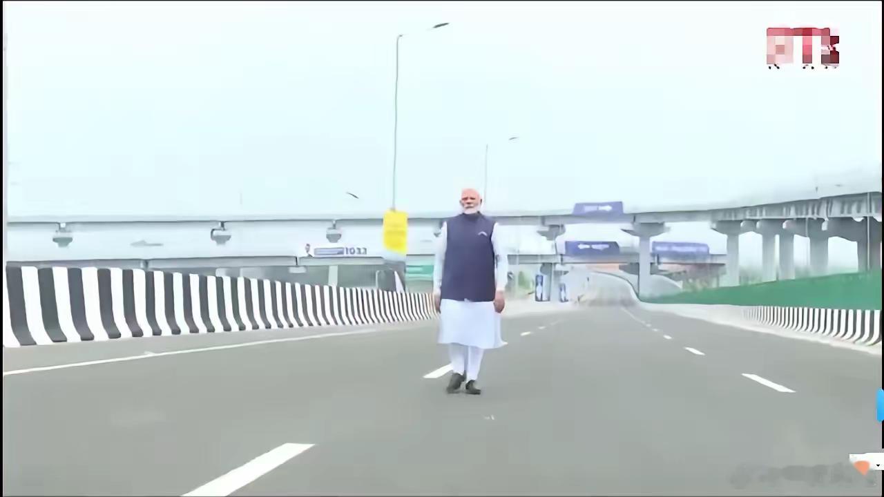 刚通了一条公路,还未通车,莫迪就得先来走秀般的走一趟,还得让众多媒体相继怼着脸的拍照,瞧身后公路一侧还有他的巨幅照片。