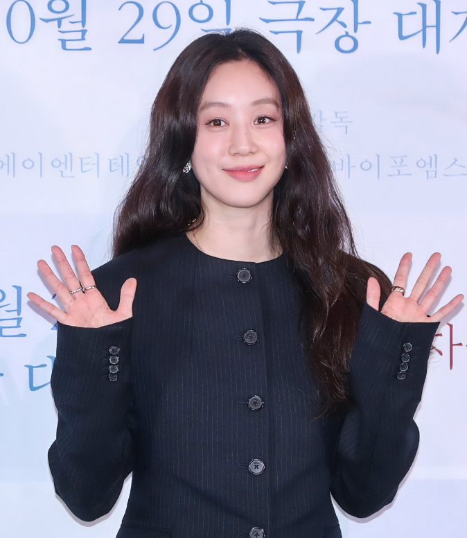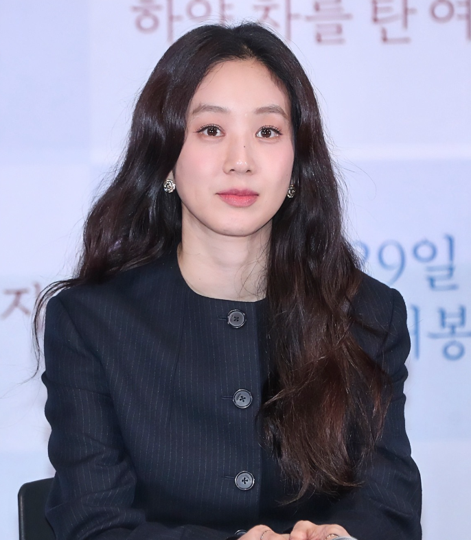 27日下午,演员郑丽媛出席了在首尔龙山区CGV龙山眼公园商场举行的电影《坐白车的女人》的发布会,并发表了问候语。