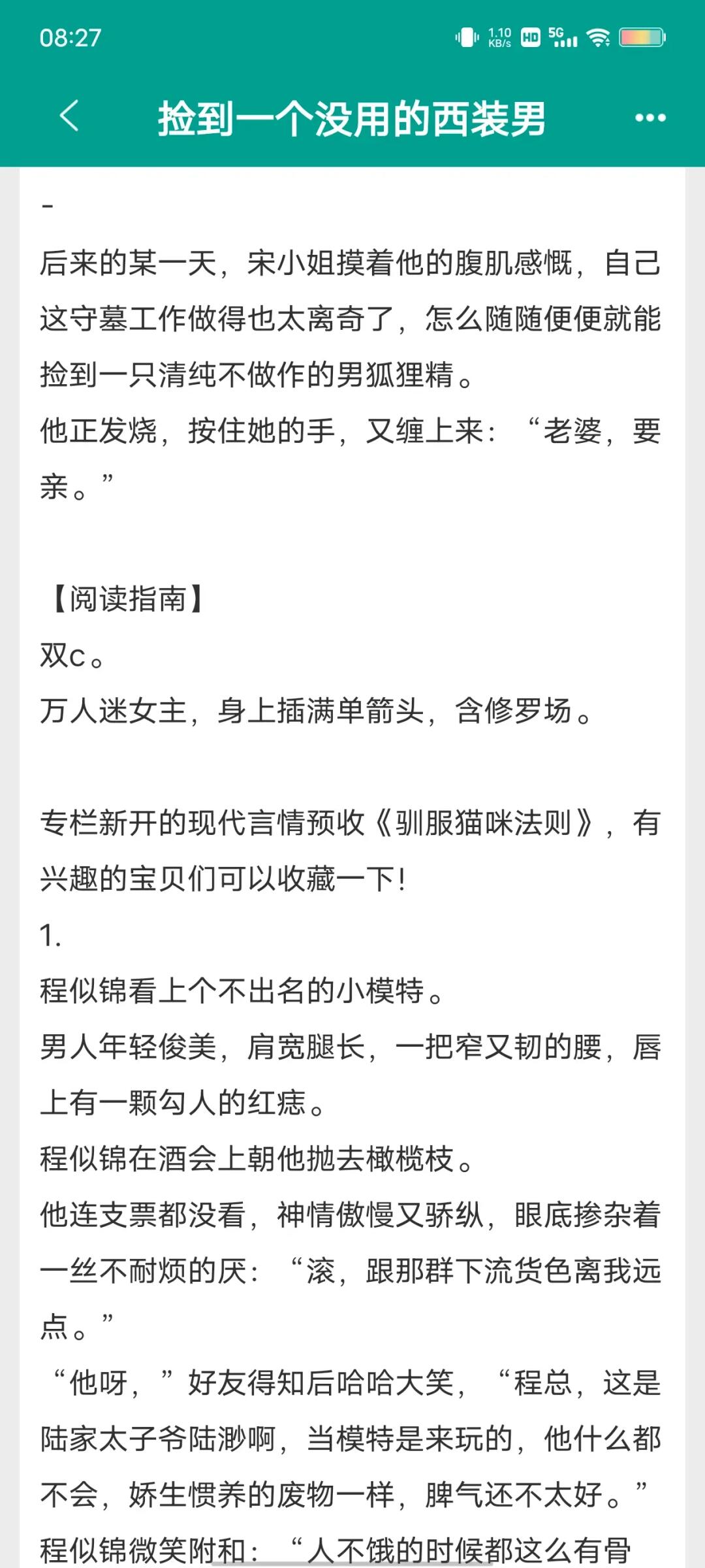 《捡到一个没用的西装男》by道玄 23年完结的新文,一共87章 高武力值高智商大女主vs贤夫良父受男德小狐狸 很吸引人的设定,内容比文案好看一百倍。
