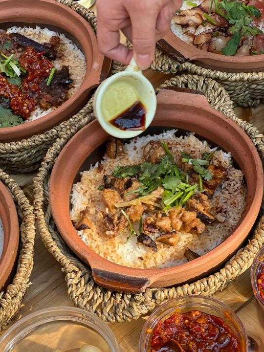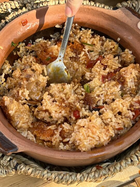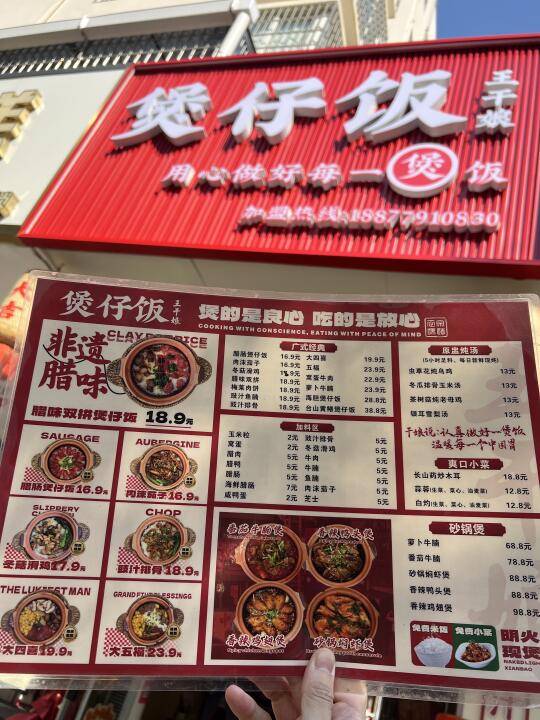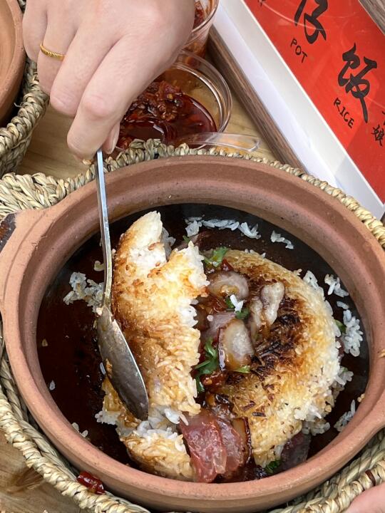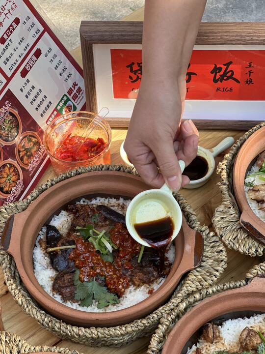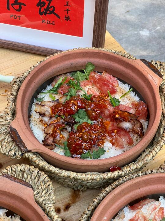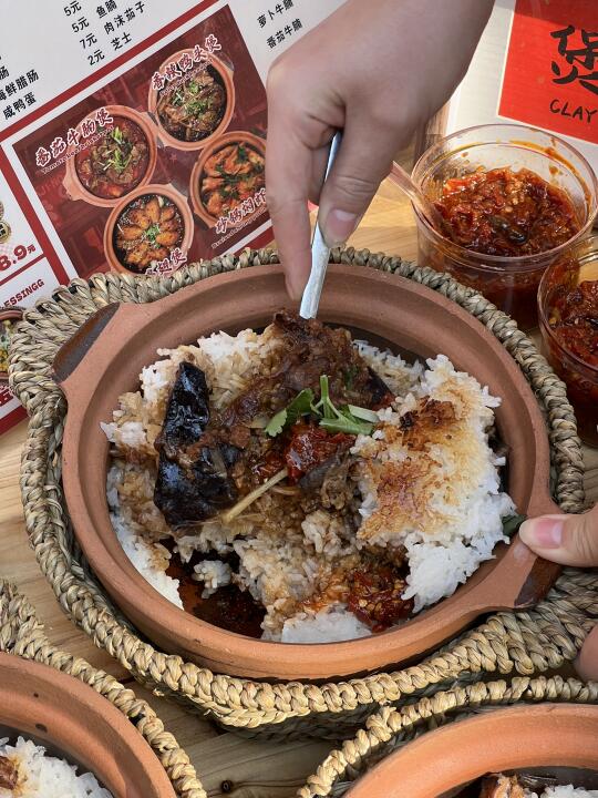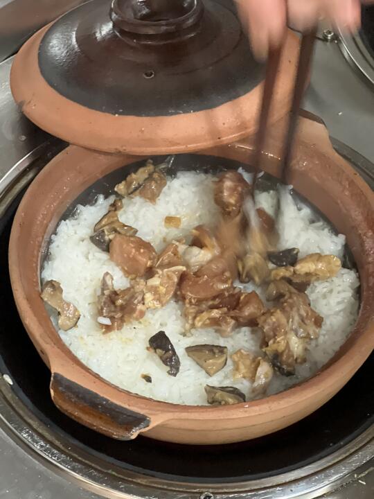真材实料好味道,朋友推荐的这家煲仔饭都是非常新鲜的食材,焦香的煲仔底,混着老板的秘制酱油,香昏迷了都,还有ta家免费的汤也是很多料,也不要错过老板的秘制辣椒酱,光辣椒酱配饭也是一绝!