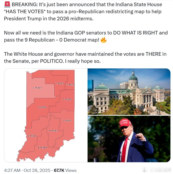 现在只需要印第安纳州共和党参议员们 做正确的事,通过9个共和党,0个民左党的地图!