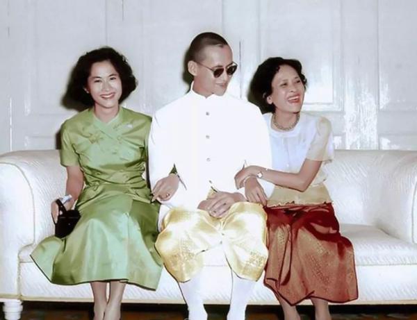 泰国老国王一旁坐着慈祥的母亲,一边坐着漂亮的姐姐。血浓于水,他们一家人笑得好开心呀。如今他们一家人不知九泉下有无团聚了?这么相亲相爱的一家人就该来生再当亲人。