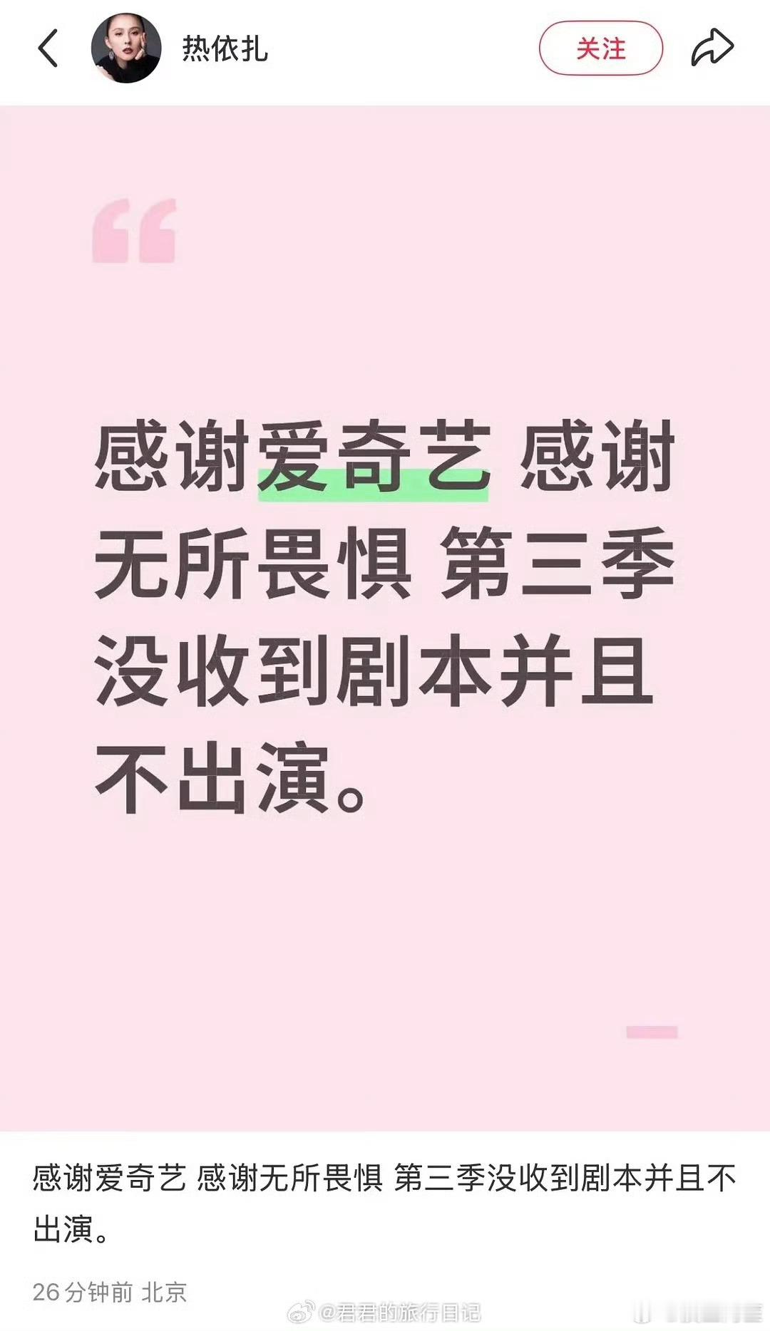热依扎这是和🥝《无所畏惧》综艺闹不愉快了?