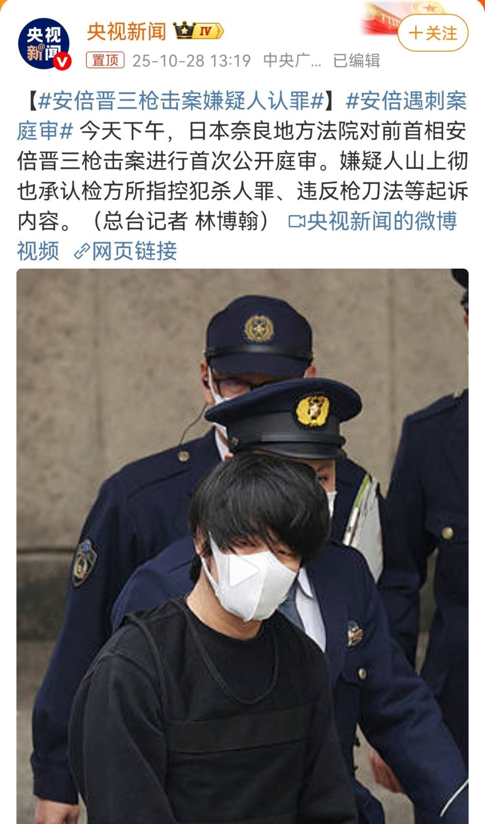 安倍晋三枪击案嫌疑人认罪上山彻也这个人设,非常符合古代侠客的定义——匹夫一怒,流血五步,天下缟素。山上彻也这一击,还摧毁了美国持枪者“武德充沛”的神话。任鹏霄[超话]