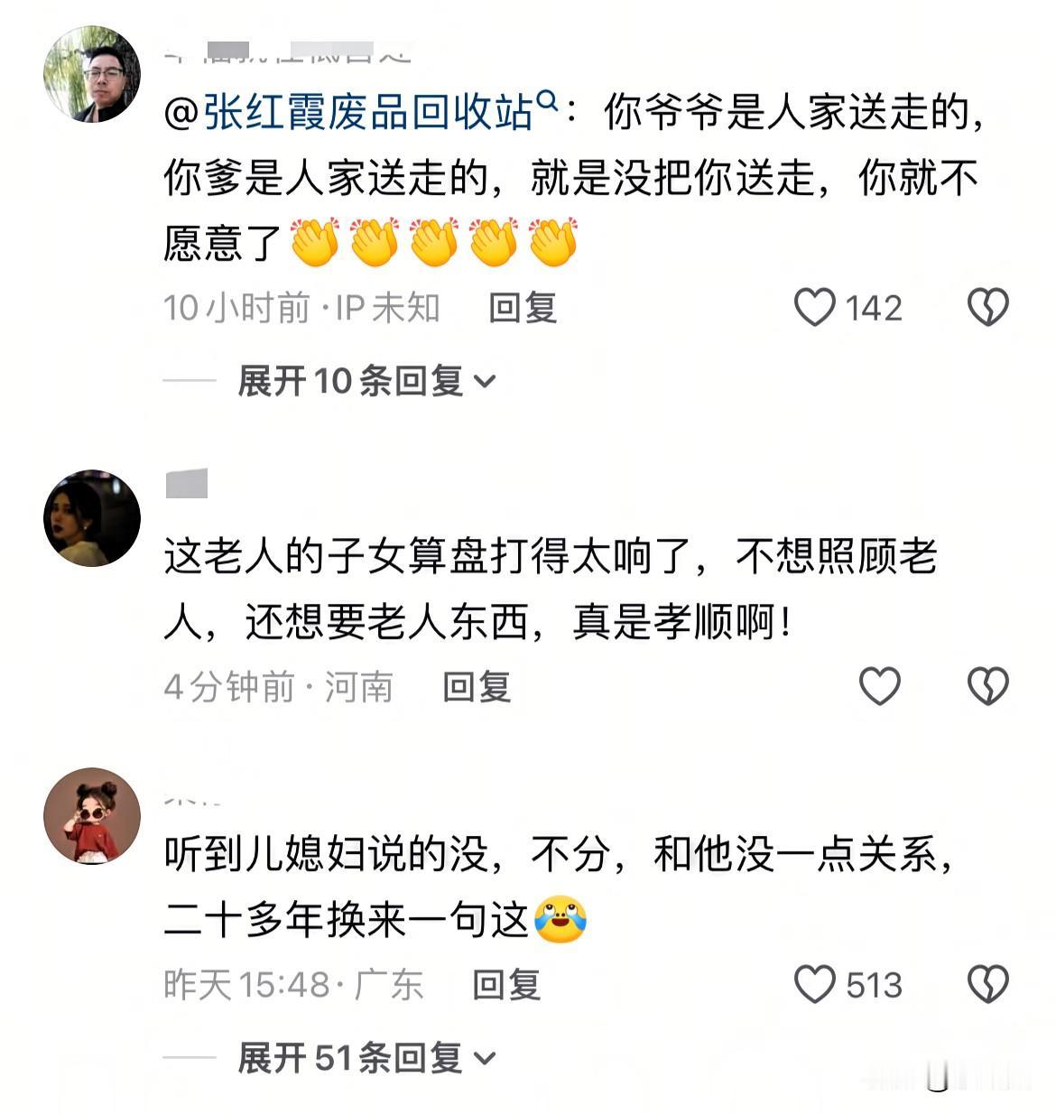 半路夫妻的悲哀!河南新乡,女子二婚和丈夫生活20多年,尽心尽力照顾一家老小,然而丈夫不幸癌症去世后,女子却被丈夫子女赶出了家门,丈夫女儿回应:“坚决不会分她一点东西,和她没任何关系!” 原来丈夫有一个儿子,一个女儿,儿子定居在内蒙,一年只回来一次,女儿定居在陕西,也很少回来。 自从丈夫得了癌症以后,都是张女士尽心尽力照顾,就连丈夫去世,儿子儿媳都没回来。 丈夫临死前只留下这个老房子和十几亩地,谁知丈夫的女儿却不同意房子和地留给后妈,甚至把张女士的床铺盖扔到了大街上,认为和她没有任何关系,别想分任何东西! 张女士感觉很委屈,这么多年的付出,却换来这样的结果。这下矛盾一下子升级了,目前辖区工作人员已经介入调解。 我觉得,不管怎么样人家和你父亲生活了20多年,生活上更是精心照顾,没有功劳也有苦劳,最起码房子应该让老人住到最后,人不在了,你们再收回,农村的地这么便宜,有啥可争的? 做人也要有良心,不要让好人寒心,毕竟人在做,天在看,大家觉得呢? (信息来源:小莉帮忙)