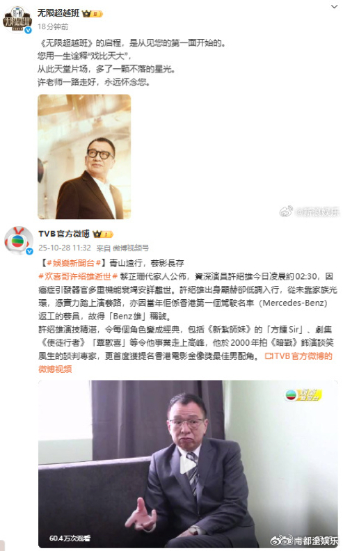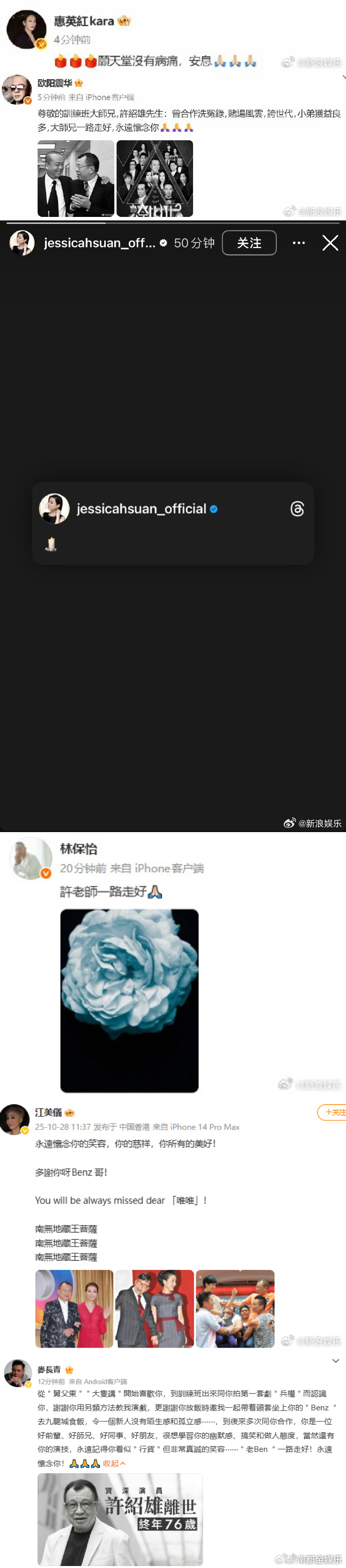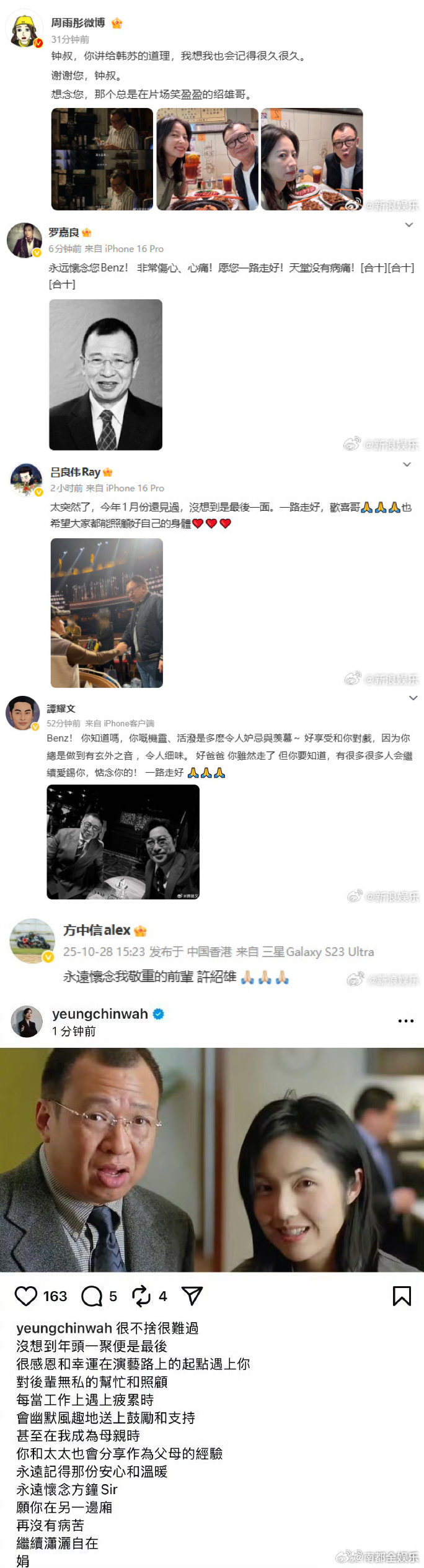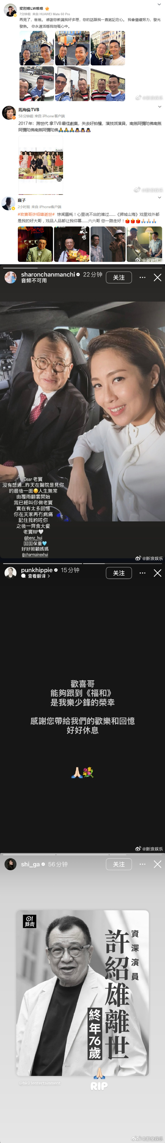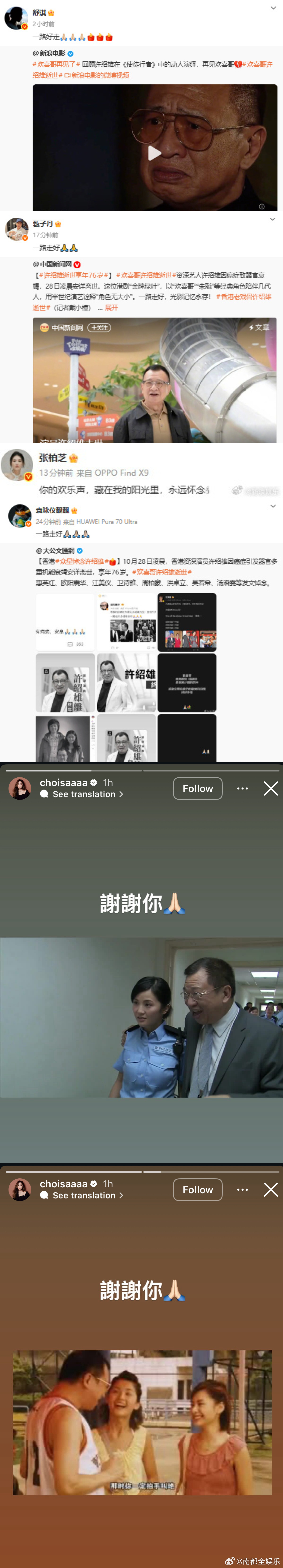 佘诗曼谈许绍雄去世落泪众星悼念许绍雄28日,许绍雄因病逝世,圈内好友舒淇、甄子丹张柏芝、袁咏仪、蔡卓妍、周雨彤、罗嘉良、吕良伟、谭耀文、方中信、惠英红、欧阳震华、宣萱、林保怡、杨千嬅、江美仪、麦长青、梁烈唯、马海伦、巍子、陈敏之、周柏豪、连诗雅等发文悼念。
