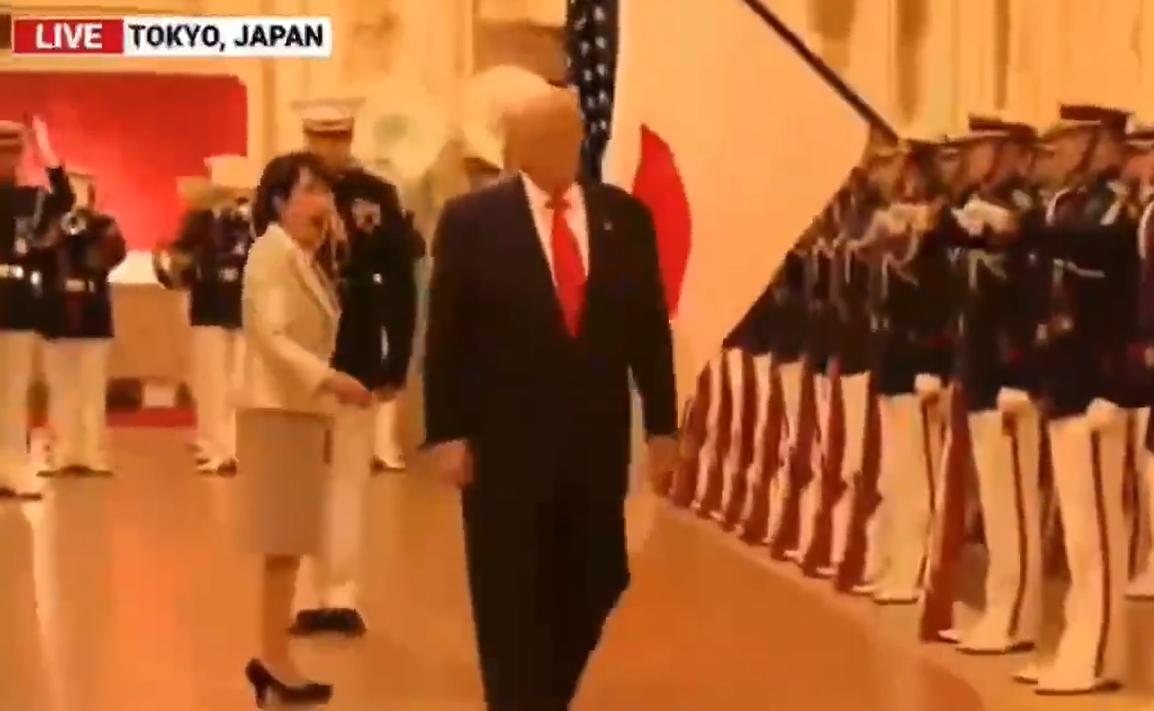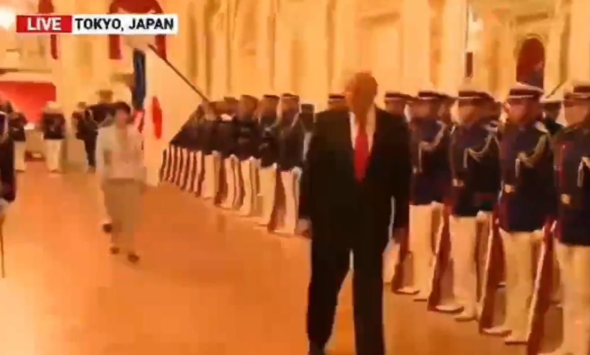 懂王拒绝向日本国旗鞠躬! 按照日本惯例,在欢迎仪式上,日本首相和外国领导人都会停下来,向两国的国旗鞠躬。但懂王根本不按照规矩来,就像图一一样,就对美国的国旗,敬个礼直接走了,留下日本首相一脸懵。川普不回头小快步的走,日本首相只能自己在国旗前鞠躬致意,再去追懂王。 看来懂王是懂行市的,拒绝对着日本国旗鞠躬,是懂王的傲娇。 站在懂王的角度来看,估计不太愿意给自己的小弟鞠躬。毕竟二战中日本战败,美国是战胜方之一的国家。二战以后的日本,就一直是美国的小弟。现在美国虽然有点落魄了,但也是日本的真正的大哥。所以让懂王给日本国旗鞠躬,懂王估计是不屑于这么做的。 看了整段视频,懂王确实只对美国国旗敬礼了,对日本国旗则是没有表示。 懂王就是这么做,日本也不能说什么,反正懂王会说:我们做事,就是这样!