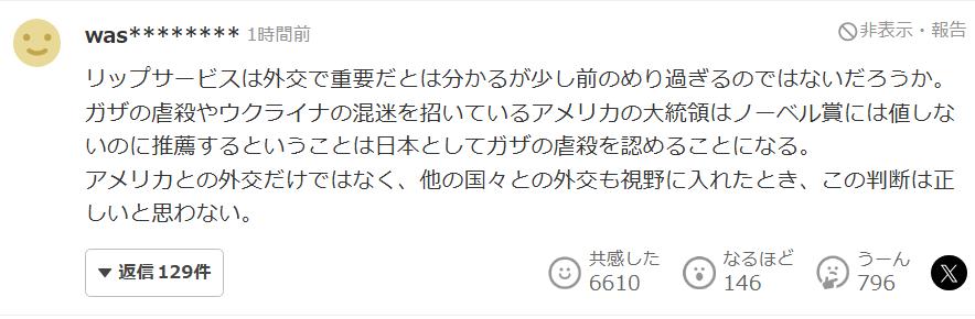 高市早苗急吼吼给特朗普“上贡” 尤其包括诺奖,日本网民炸锅了:他也配? 为了抱特朗普大腿,高市早苗可真够拼的。 10月28日上午,她跟来日访问的特朗普在东京迎宾馆见面,头一回碰头就搞出大动作——居然说要提名特朗普去争诺贝尔和平奖!消息一出,日本网民彻底坐不住了,骂声一片。 到底聊了啥?稀土、军费、关税……全是硬货! “日美如今是全球最强同盟,我要和特朗普总统一起开启两国关系的‘黄金时代’。”高市早苗对着镜头满脸堆笑,话说得比唱的还好听。 据《每日新闻》透露,两人嘴上喊着“强化日美同盟”,会后还要签联合文件敲定关税协议。日本不光得掏更多军费,连人工智能、航天这些领域也得陪美国一起玩,甚至还要帮美国振兴造船业! 更离谱的是,两国还要合作“保障稀土供应”。日本不是早就嚷嚷要挖南鸟岛附近的稀土吗?可技术不过关、成本高到离谱,产能更是遥遥无期——现在又拿这个画大饼,骗谁呢? 会谈中,两人还拿已故前首相安倍晋三当话题套近乎。高市早苗感谢特朗普“和安倍私交好”,特朗普也顺势接话:“安倍早跟我提过你,他要知道你当上首相肯定高兴。”谁不知道安倍在任时就跟特朗普勾肩搭背,高市更是他一手提拔的“自己人”? 特朗普对“黄金时代”这顶高帽很受用,直接回捧:“我爱日本,特别尊重这个国家。日美关系铁得很,以后只会更铁。” 至于提名诺贝尔奖这出戏,日本电视台挖出猛料:高市早苗早在25日跟特朗普通电话时,就夸他“在中东问题上展现领导力”。还有日本政府人士放风,说特朗普调解过柬埔寨和泰国冲突,“为和平做了贡献”——就这?也能当成推荐理由? 特朗普自己更飘了。27日晚见天皇德仁时,他居然大言不惭地自夸:“我任内解决了8场冲突!”德仁也只能尴尬回应:“看到战乱我很痛心,希望和平早点来。” 日本网民怒喷:舔美舔到不要脸! 高市早苗要给特朗普争诺奖这事,连她的粉丝都看不下去。日本新闻评论区彻底翻车: “一个纵容加沙大屠杀、搅乱乌克兰的总统,也配拿和平奖?提名他等于默认美国暴行!” 有人火力全开:“不愧是安倍带出来的人!这届政府根本在辱国,纯属舔美表演。日本首相不该当美国奴才!国防预算增加要不是为了日本独立,而是伺候美国战略,那还不如不增!” 也有人勉强替高市说话:“想跟美国建立信任可以理解,但拿诺奖当外交手段太恶心了。”