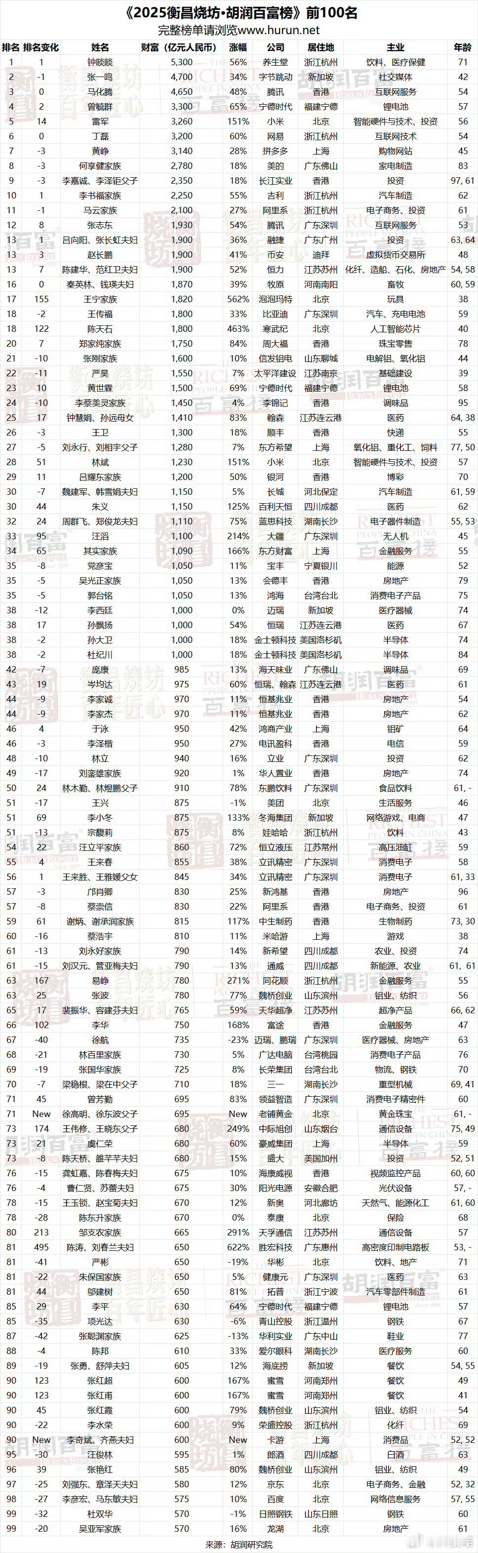 2025年胡润百富榜出炉