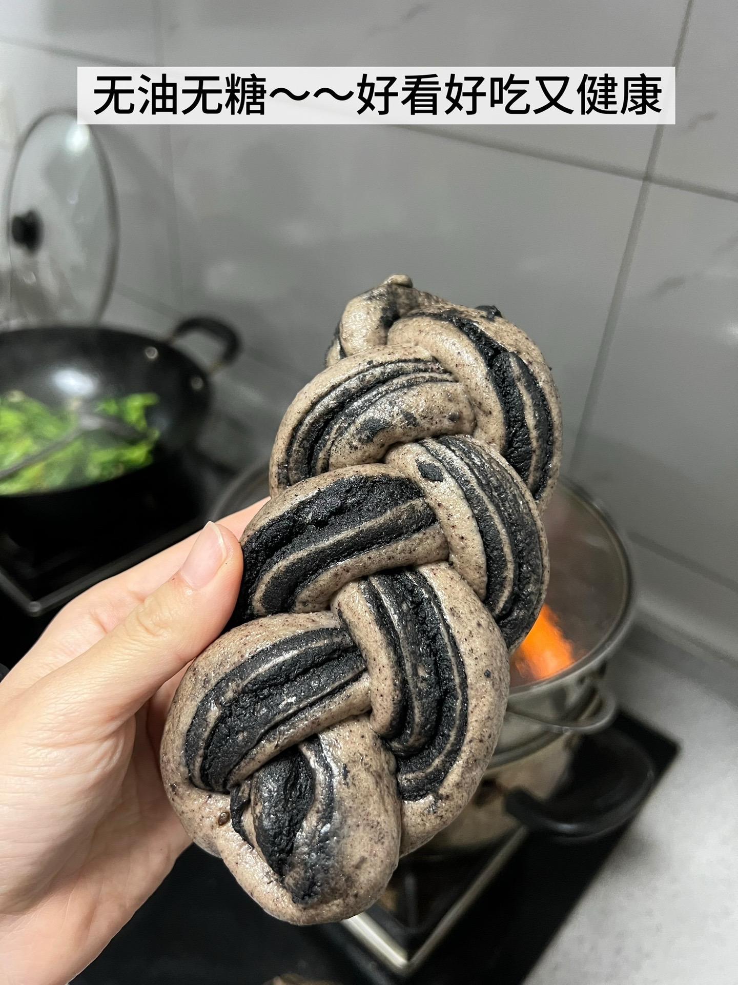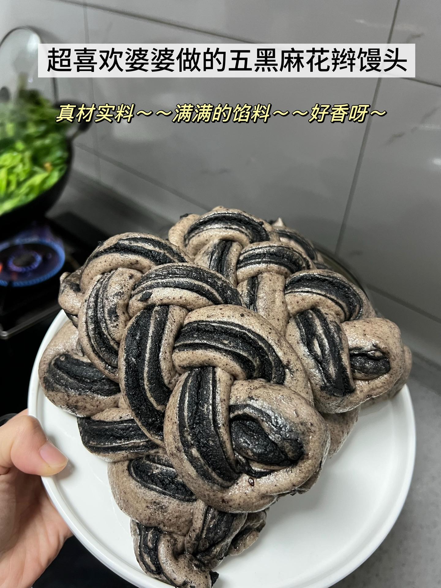 她知道我爱吃黑芝麻,就跟着手机视频,看了几遍,就做出了又漂亮又好吃,又很有营养的麻花辫馒头。