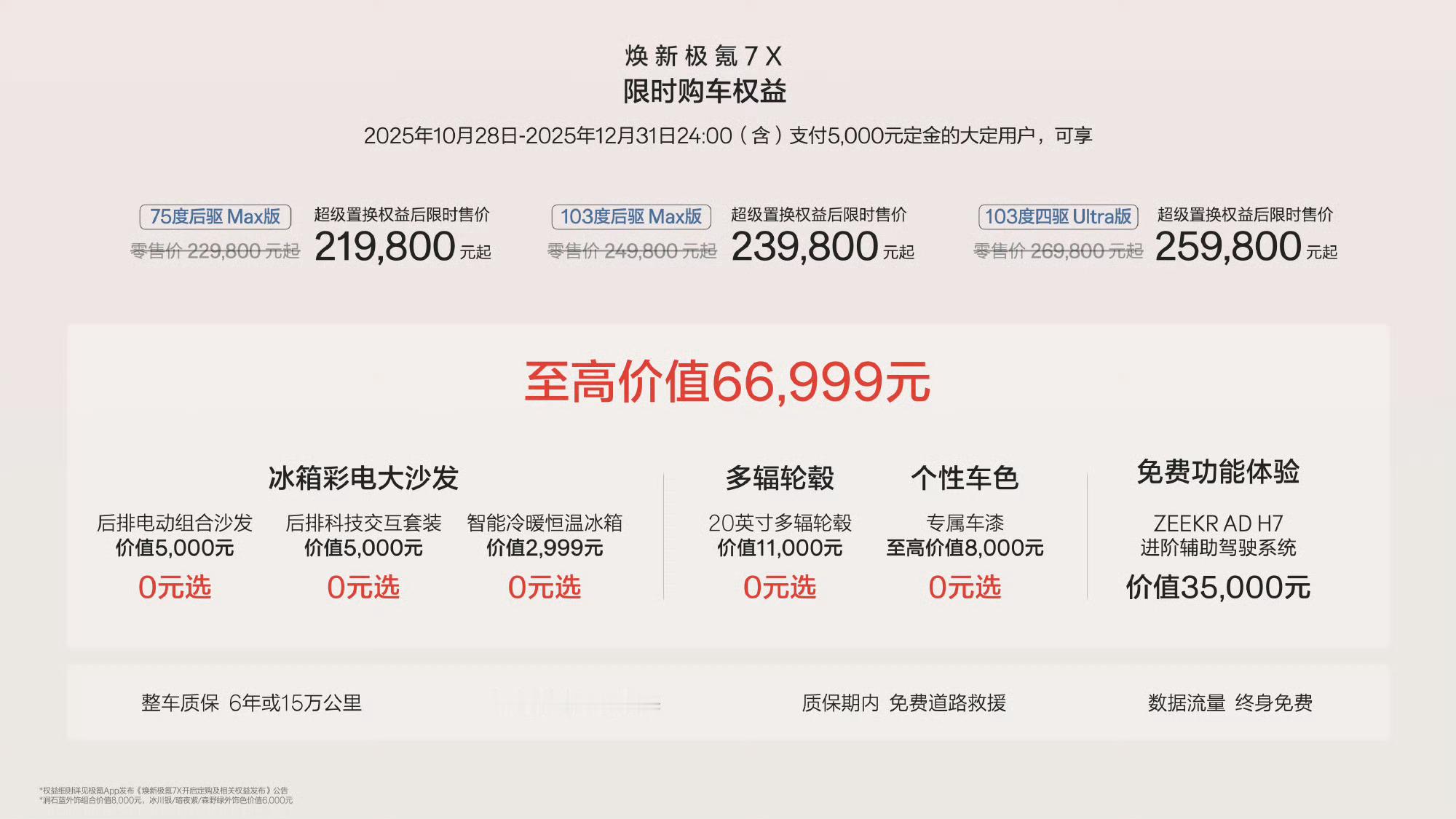 75度后驱Max版 、103度后驱Max版、103度四驱Ultra版三款配置
