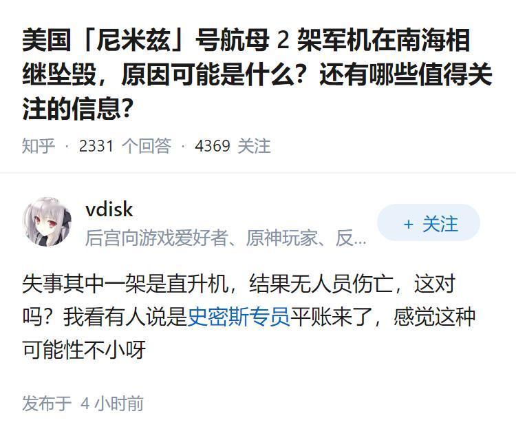 美国「尼米兹」号航母 2 架军机在南海相继坠毁,原因可能是什么?还有哪些值得关注的信息?