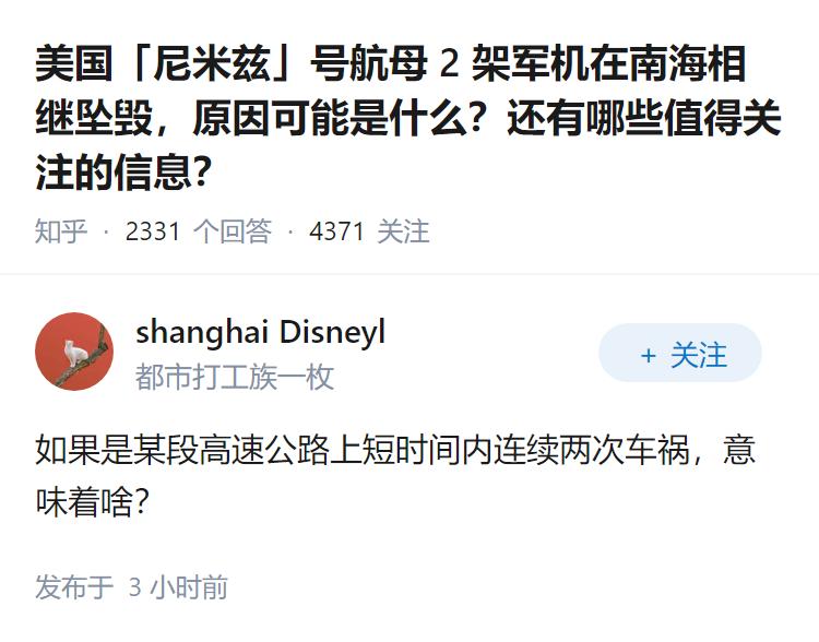 美国「尼米兹」号航母 2 架军机在南海相继坠毁,原因可能是什么?还有哪些值得关注的信息?