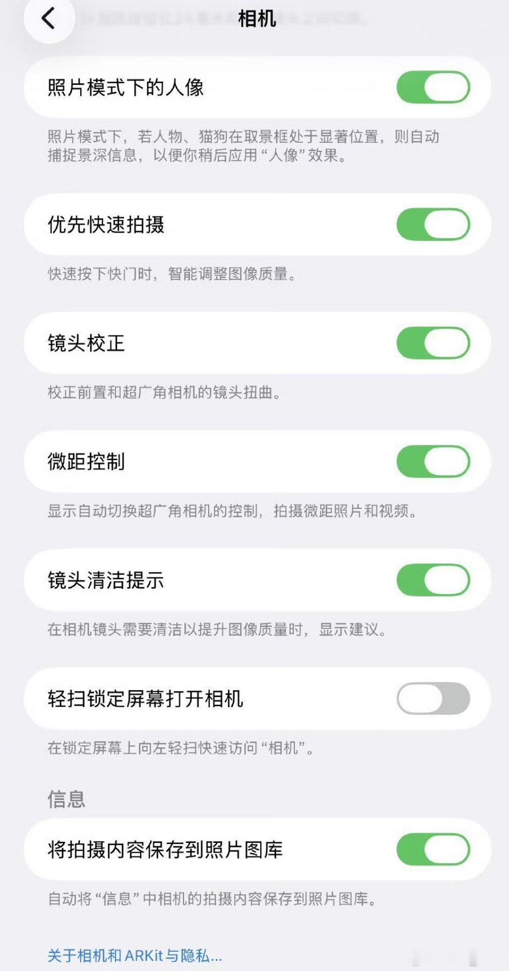 有时候不注意放口袋误触,经常拍一些黑乎乎的东西,很烦人,这下可以解决了。升级至 iOS 26.1 RC(准正式版)或后续正式版后,点击设置 → 相机 → 关闭“轻扫锁定屏幕打开相机”。
