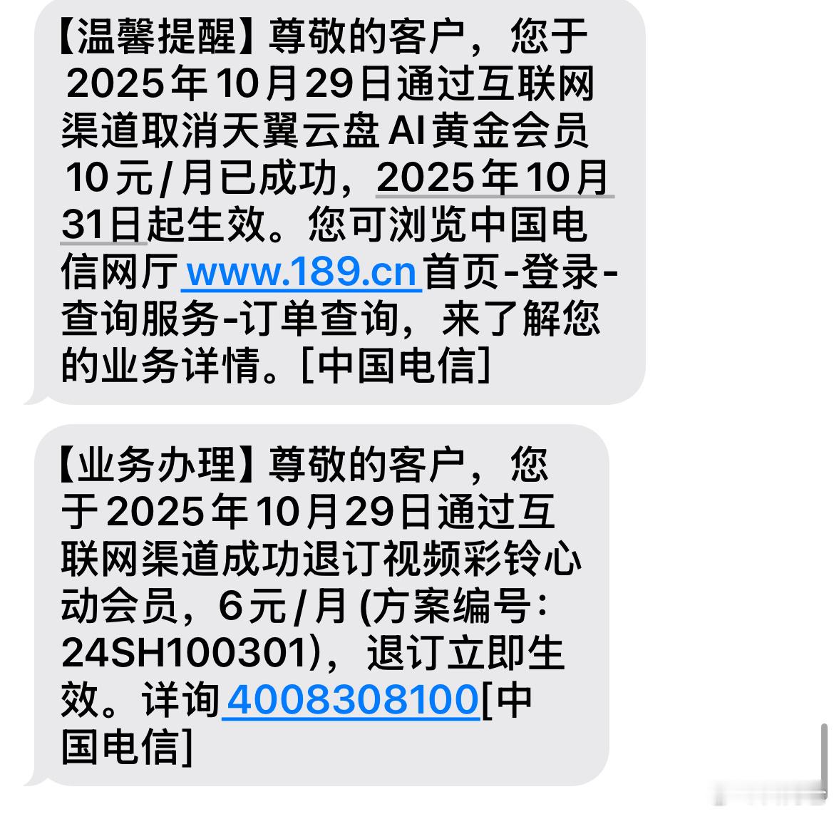 然而,换套餐的时候,给我莫名其妙勾选了俩新业务:彩铃和云盘,一个每月6月,一个每月10元。