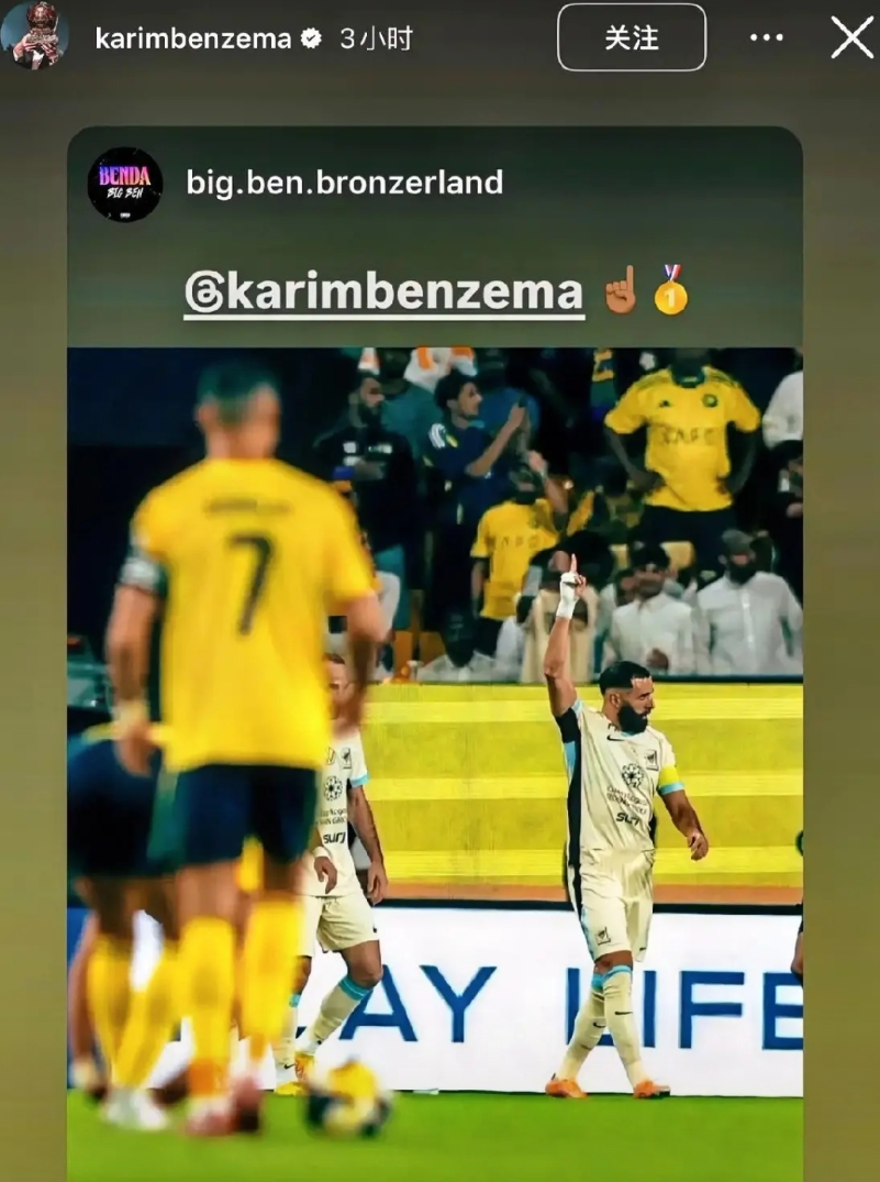 本泽马赛后社媒晒图庆祝暗讽C罗。