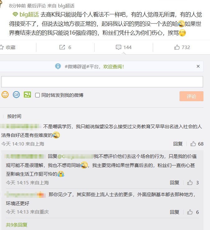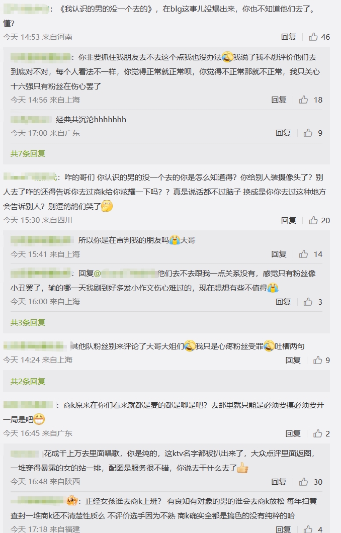 shallow night 4 2025-10-30 08:07 不说职业选手去商K这个事,但是有钱的谁没去过商K,很多女的也去点男模 √'、隨風 回复 10-30 08:27 菜就是原罪,今年四场没内战没棒子,打成这鸟样,还能怪人喷。就像国足,别的国家队不吃海参嘛,为啥他挨喷。菜菜菜