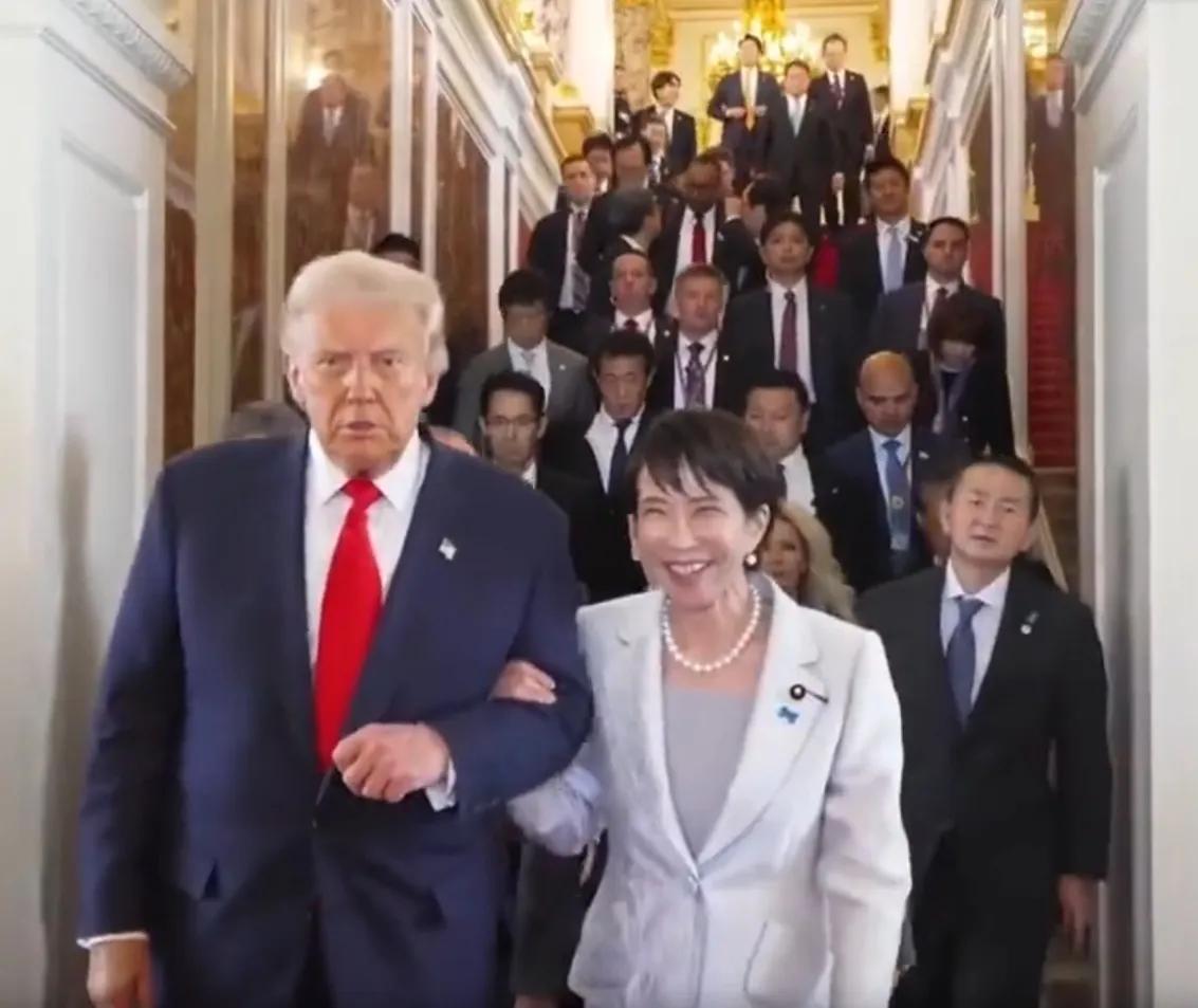 要是看完这三个场面还不觉得离谱,那真得怀疑是不是对“国际交往”有什么误解——这哪是外交场合,分明是把世界舞台当成了荒诞秀场,说它是“交际史上空前绝后的笑话”,一点都不夸张! 先看第一个名场面:高市挽着特朗普的手臂,踩着红毯梯子缓缓走下来,身后乌泱泱的保镖跟着,配上舒缓的音乐,不知道的还以为是老父亲送女儿出嫁,或是新人走婚礼红毯。可这俩人代表的是两个国家啊!64岁的政客挽着79岁的外国领导人,在无数镜头前做着超越外交礼仪的亲昵动作,既不是相亲现场,也不是情感节目,围观的其他国家观众怕是都看傻了——自家要是出这种事,老百姓能接受吗? 更离谱的是第二个场景。特朗普和高市站得异常近,明眼人都能看出来是高市主动凑上去的。特朗普讲得兴起,直接搂住了她的腰,高市不仅不避嫌,还一脸崇拜地盯着对方,活像霸总身边献媚的小秘书,真分不清这是真情还是刻意讨好。最讽刺的是特朗普的发言,说美日关系坚固,还提“80年前日本从废墟中重建”——稍微有点历史常识的小学生都知道,当年广岛长崎的废墟是谁造成的!高市倒好,把祖辈的惨痛记忆抛到脑后,对着这话笑得一脸“迷人”,这情绪转换和表情管理,简直让人瞠目结舌。 第三个场面更暴露真相。企业负责人在签约台上对着特朗普满脸媚笑,可刚走下台,镜头没关,就拍到他立马沉下脸,那表情像是憋着一肚子火。台上笑、台下丧,明摆着不是真心乐意,十有八九是被胁迫的。这签约能兑现多少投资?恐怕得看高市能不能坐稳位置。更别说企业被迫在美国投的钱,要是亏了,最后还得东京当局让日本老百姓买单。 以前总说国际风云背后是国家利益,可现在看,有些所谓的“外交”越来越像夸张的表演,谄媚、卖笑、秀亲密,把正经事搞得乌烟瘴气。还好地球上正常、稳定的力量还是多数,不然这世界真要乱套了。你要是看到这种外交场面,第一反应会是觉得离谱,还是觉得“正常”?