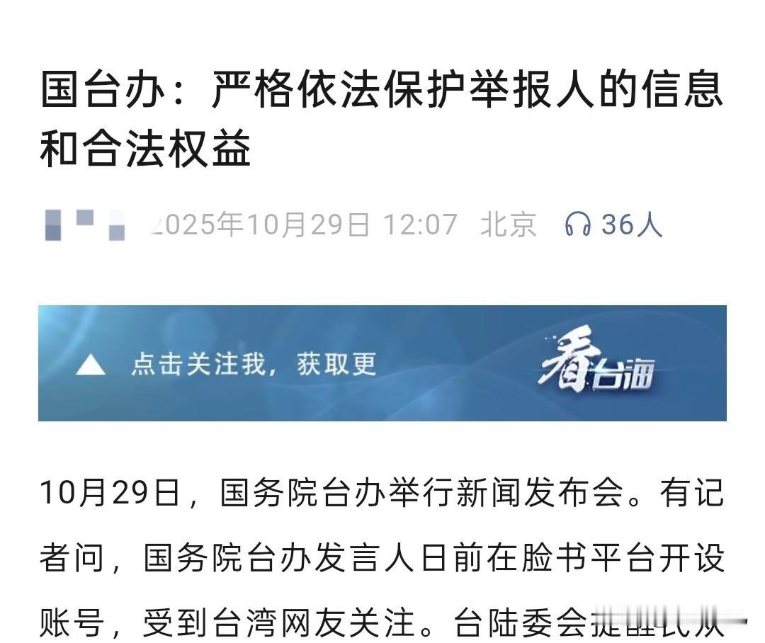 郑丽文该出来干活了。 今日台办发文《严格依法保护举报人的信息和合法权益》,文中说