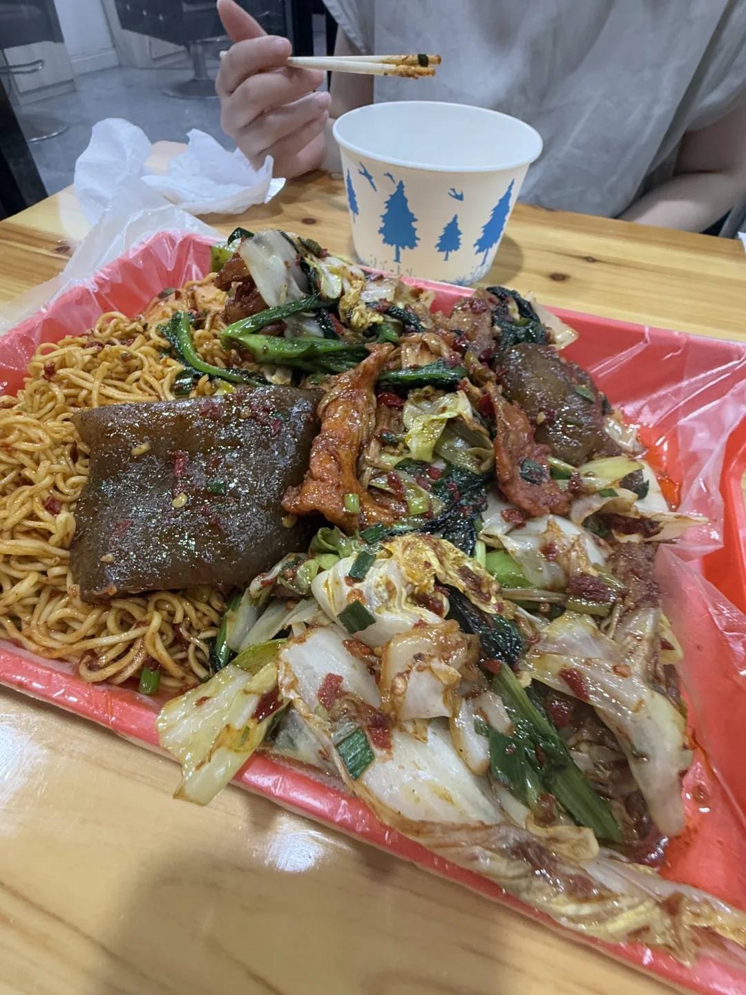 总是刷到他家!而且都说炒鸡好吃! 位置在新建县…离红谷滩还算近 性价比还可以吧~两个人吃了46 味道我感觉有一股很浓郁的料酒味(不知道是不是我的错觉)反正我觉得没有网上说的那么好吃…不值得特意跑一趟 我个人感觉比较普通~泡面挺香的~苕皮不好吃🥲其他无功无过