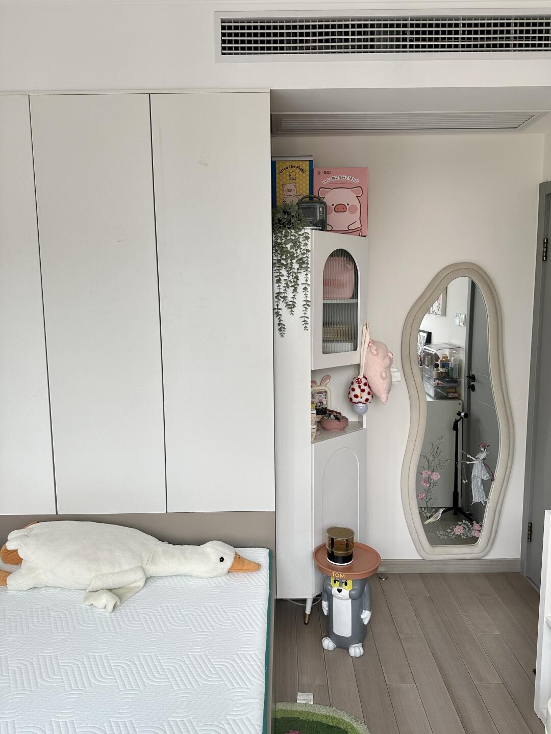 很多宝问我床🛏️的尺寸,因为我是一个人睡,所以当初定制的时候就做了1.35m*2m,中间是另外买的排骨架,没有做那种密封式的平板面,排骨架更透气,床垫下也是储物空间,相当于多出了一个衣柜的空间,塞了我们换季的衣服和东西👚
