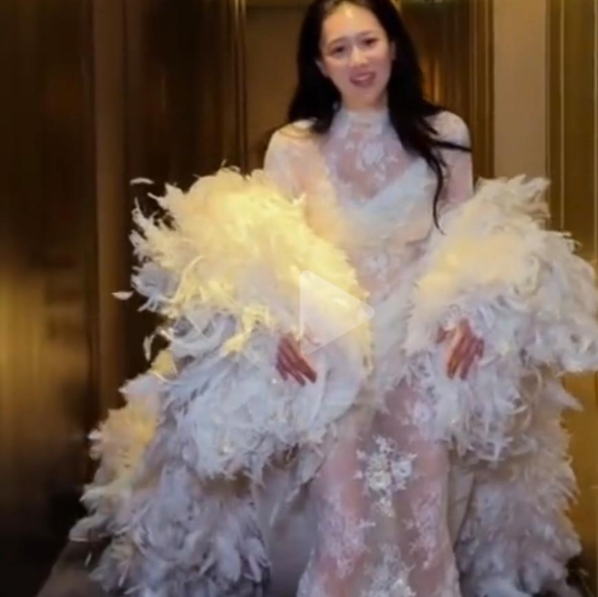 三亚海岸的风裹挟着咸湿气息掠过红毯,张馨予的出现让快门声瞬间密集如雨。她身披三米