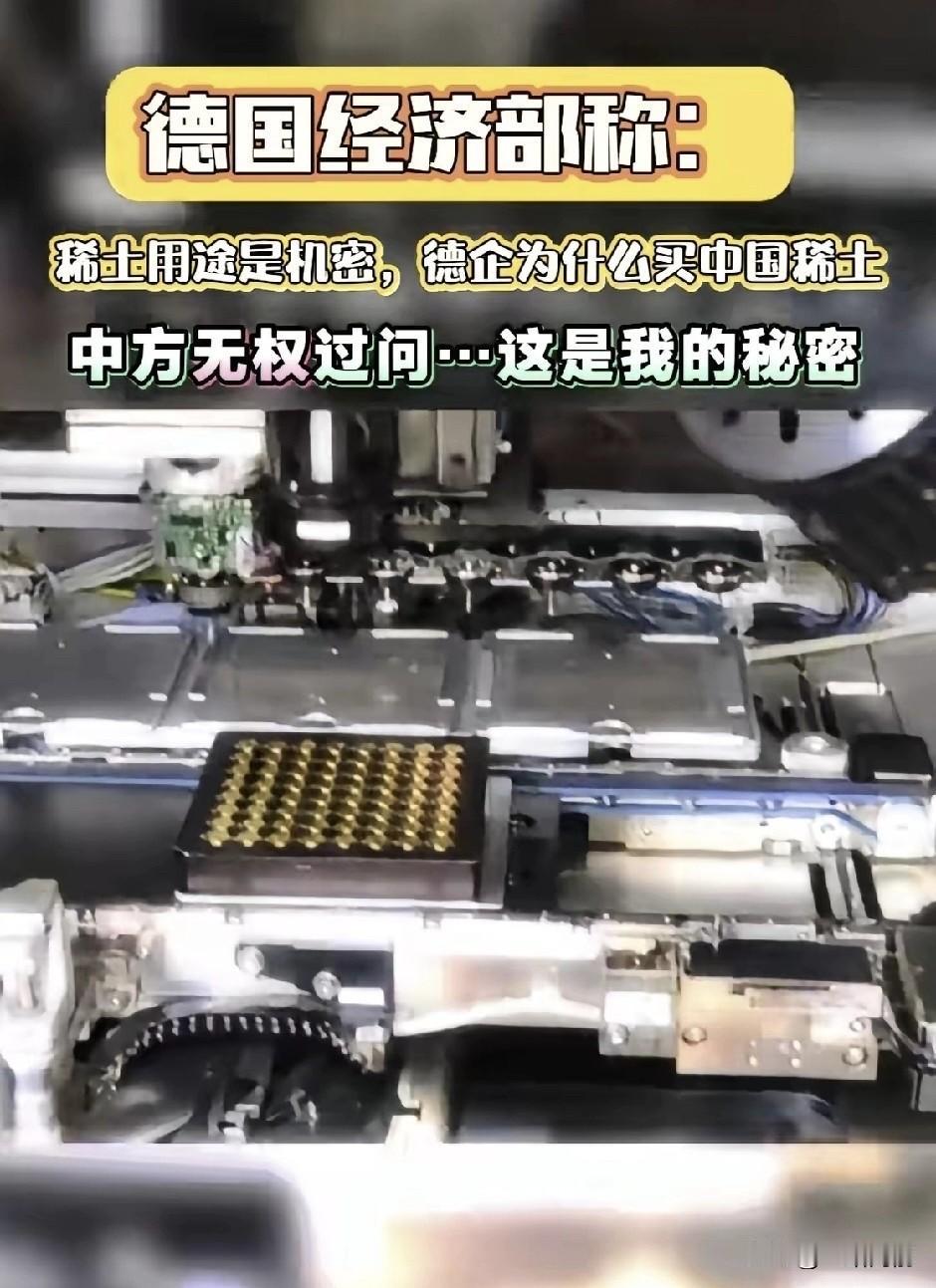德国经济部表示:“稀土用途是经济机密,中方无权过问”。这话听着挺有底气,但仔细一品,这不就像逛超市挑三拣四还嫌包装差,却非要买人家东西的顾客吗? 关键是,稀土可不是大白菜啊!全球69.2%的产量攥在我们手里,更狠的是90%以上的冶炼分离能力都在中国。从采矿到提纯的全产业链优势,是我们几十年技术攻坚攒下的底气,不是谁想替代就能替代的。德国自己也门儿清,他们90%以上的稀土磁铁都依赖中国进口,汽车、航空航天这些战略产业根本离不了。 现在倒好,中国新规要求申请进口许可得提交设计图纸、客户名单这些材料,德国立马急了,一边喊“侵犯机密”,一边又不敢真断供。要知道,宝马生产线每分钟就下线一辆新能源车,每辆车得用2.5公斤稀土,真断供了不出几天就得停工。慕尼黑的工程师更清楚,换个稀土供应商光认证就得三年,成本还得翻好几倍,根本耗不起。 其实德国企业早就用行动投票了。彭博社都报道了,尽管抱怨数据泄露风险,德国企业还是扎堆交申请,毕竟95%的稀土原料都来自中国,没得选。之前德国央行行长还放狠话要“反制”,结果欧盟自己的计划也只是到2030年把本土生产比例提至10%,短期内纯属空谈。 说真的,我们从来没逼着谁买,是德国自己把供应链绑在中国身上。现在要么按规矩提供必要信息,要么去找替代来源,没人拦着。毕竟买卖讲究你情我愿,既然嫌问得多,那大可以不买,我们还省得费口舌呢。