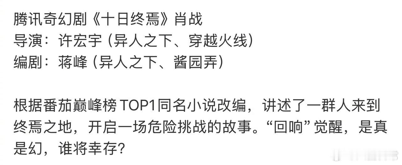 🍉在传《十日终焉》主演是肖战十日终焉肖战