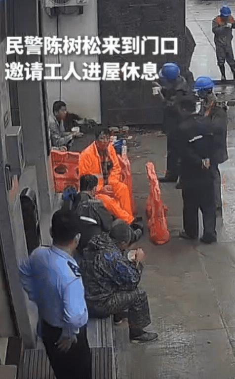 这民警火到人民日报了!湖北一群修路工人午饭时,为了避雨,来到派出所门前台阶坐下,不料,民警发现后,竟然跑出来对工人大喊:全部进来!里面有位置坐,雨天这么冷。工人进来之后,民警还贴心为他们倒上热水。网友:这一杯开水,暖的是胃,更暖的是为城市建设者着想的那份真心! “全部进来!里面有位置坐,雨天这么冷,都在门口坐着我看着不舒服!” 湖北黄石澄月派出所门口,教导员陈建松朝着台阶上的身影大喊,这声急促又恳切的呼喊,让一群修路工人愣住了。 谁也没想到,只是想找个地方避雨吃午饭,竟会被民警热情地迎进屋里,还喝上了热气腾腾的热水。这段画面被传到网上后,不仅火上了人民日报,更让无数网友心头一暖。 事情发生在 10 月 19 日中午,一场秋雨突然落下,寒意顺着雨丝往骨头缝里钻。刚结束一上午路面修补工作的工人们,浑身上下沾着沥青和泥土,深蓝色的工作服被汗水和雨水浸透,紧紧贴在背上。 他们负责的路段离派出所不远,午休时间只有短短一个小时,来不及找正经饭馆,就各自从帆布包里掏出凉透的馒头和咸菜,在派出所门前的台阶上坐了下来。 台阶被雨水打湿,冰凉滑腻,工人们却毫不在意,有的蜷缩着身子挡雨,有的干脆把安全帽扣在头上,狼吞虎咽地往嘴里塞食物。他们常年在户外作业,早就习惯了这样的就餐方式,春天顶着风沙,夏天晒着五十摄氏度的路面,秋天淋着冷雨,冬天迎着寒风,能有个遮风挡雨的角落就已经很满足。 陈建松正是在这时从所里走出来的。他刚处理完一宗户籍业务,抬头就看见门口台阶上挤着的身影,雨水顺着他们的帽檐往下滴,落在干裂的手背上。 从事公安工作十多年,他见过太多城市建设者的不易,辖区里的环卫工人、建筑工人,常常在路边将就着吃饭休息,每次路过都忍不住多留意几眼。那天的雨格外冷,看着工人们冻得发红的耳朵和皲裂的手指,他没多想就喊出了声。 起初工人们还有些拘谨,你看看我我看看你,没人敢动。他们身上带着尘土,怕弄脏了派出所干净的地面,也觉得麻烦别人不好意思,只是一个劲儿地摆手。 陈建松见状,干脆走下台阶,挨个往屋里引,语气里带着不容拒绝的热情。就这样,十几个工人拎着各自的饭盒,小心翼翼地走进了办事大厅,尽量贴着墙边找位置坐下,生怕碰脏了光洁的瓷砖。 安顿好大家,陈建松转身走进值班室,抱出一摞一次性水杯,又拎来热水壶,挨个给工人们倒上热水。滚烫的水流冲进杯子,氤氲的热气很快模糊了杯壁,工人们双手捧着杯子,把脸凑过去取暖,粗糙的手掌被烫得微微发红,却舍不得松开。 有路过的市民拍下了这一幕,视频里,工人们捧着水杯的样子质朴又腼腆,陈建松忙碌的身影在大厅里穿梭,暖黄色的灯光照在每个人脸上。视频一经发出,很快就被大量转发,人民日报也转发点赞,评论区里全是感动的声音。有人说自己也是修路工人,太懂雨天在路边吃饭的滋味;有人回忆起深夜在派出所避雨的经历,说民警给的热水至今记得温度。 澄月派出所的民警们倒觉得这是件平常事。从那以后,所里特意在大厅角落收拾出一块区域,摆上了几张长椅,还备上了热水、纸巾和常用药品,专门留给需要歇脚的户外劳动者。路过的环卫工人、快递员,累了渴了都会进来坐坐,一杯热水下肚,又能重新充满干劲。 一场冷雨,一声呼喊,一杯热水,看似不起眼的举动,却让城市建设者们感受到了实实在在的温暖。那些平日里默默付出的身影,或许从不奢求特殊对待,但这样不经意的关怀,恰恰最能戳中人心。 对此,你们有什么看法,欢迎评论留言~