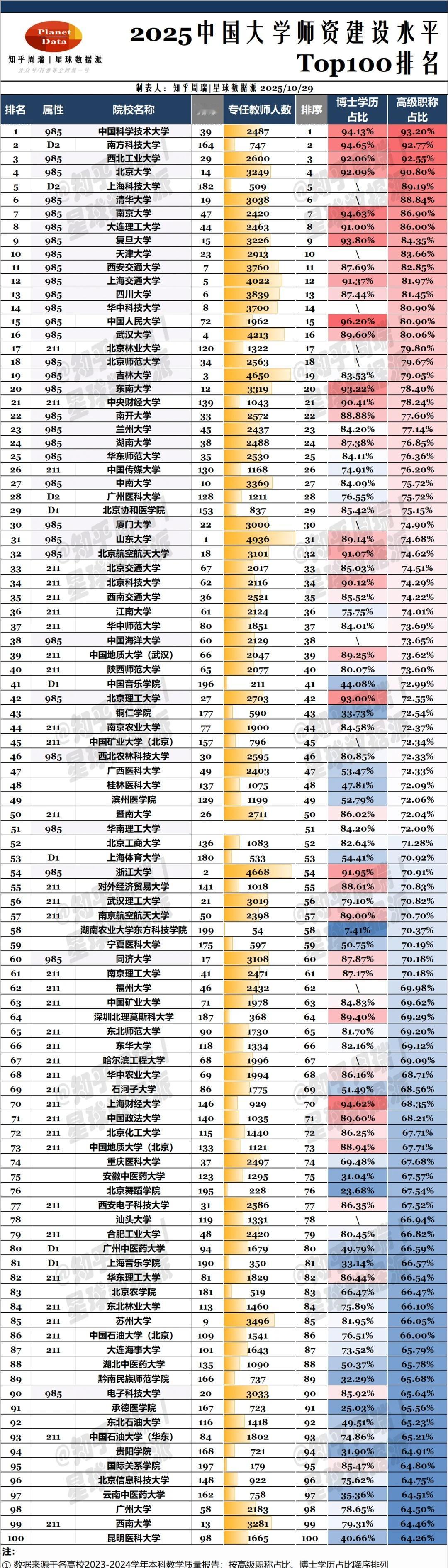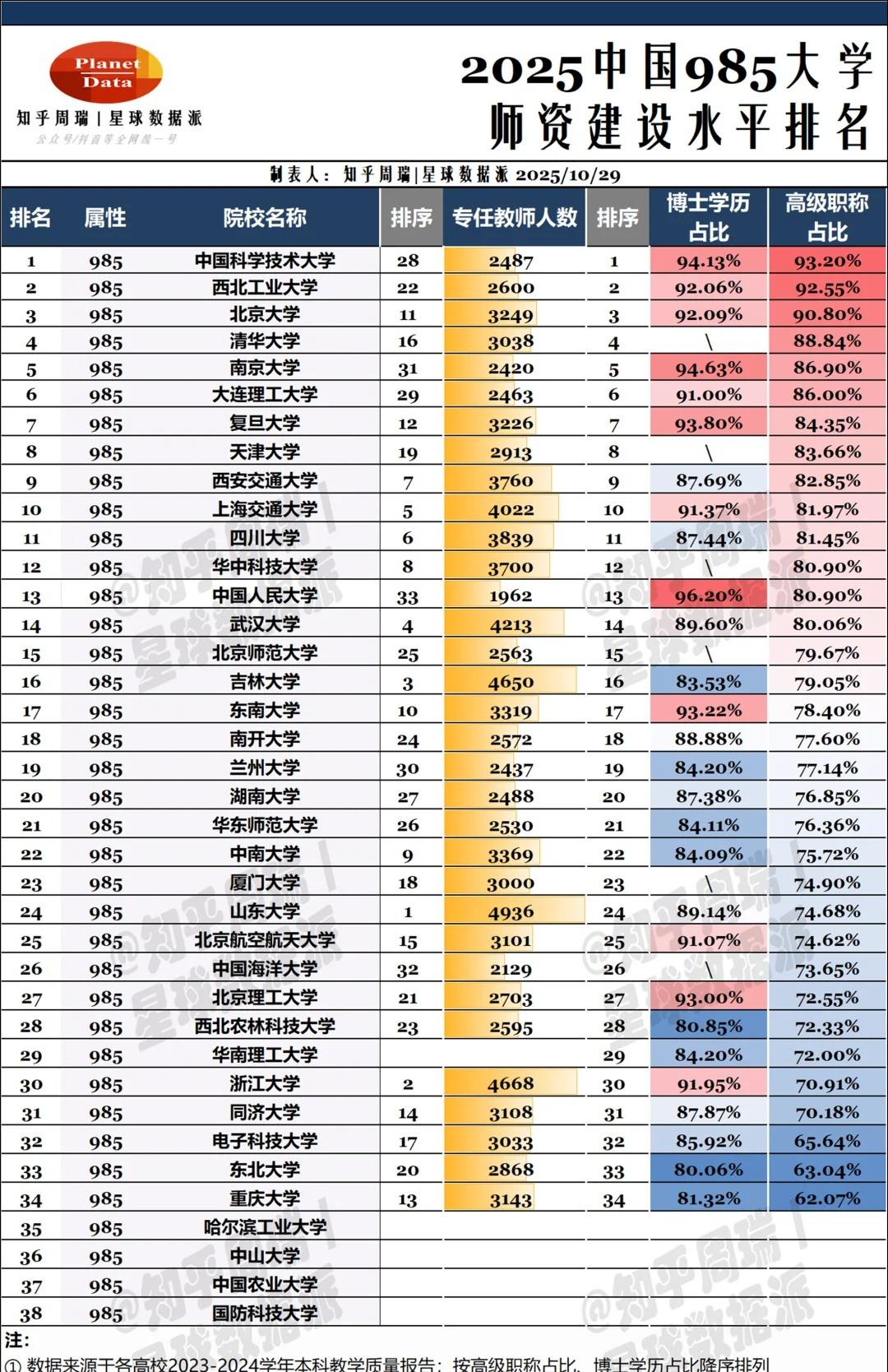 2025高校师资水平一览表 星球数据派荣誉出品两财一贸 高考分数线 保研率 世界大学排名 高校教师 高校行政管理岗 名校