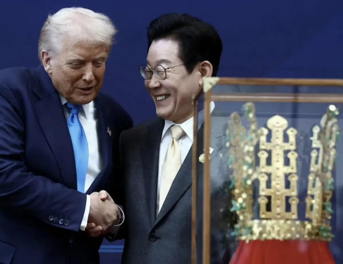 李在明像高市早苗一样拼命讨好老特,给老特送了多个礼物,其中包括大金冠(仿制品)。目的嘛,和高市一样希望老特高抬贵手,不要对韩国宰太狠。 但是老特是礼物照收,对韩国该宰还是一点儿不手软。李在明和高市都没搞懂一件事,面对饿狼,一味讨好,只会让饿狼更加肆无忌惮。现在的美国兜比脸干净,老特为了搞钱都不惜打全球关税战,怎么可能放过日韩这两头还比较肥的羊。日韩越是跪舔,老特下刀越狠。#李在明#