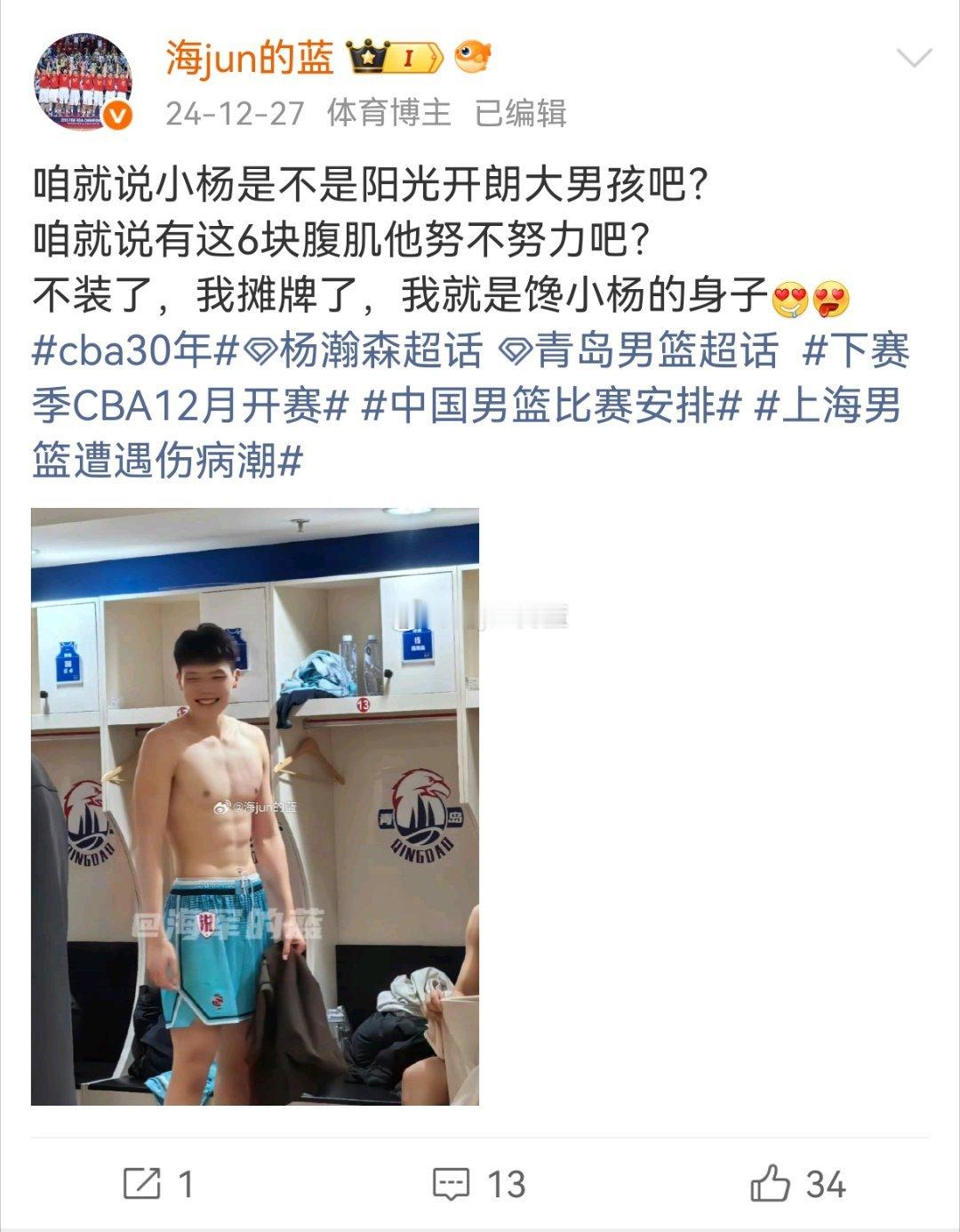 杨瀚森到底刻不刻苦?努不努力?除了他的亲朋好友、青岛队教练组管理层之外,最了解他的应该就是我们这些在CBA一线报道他比赛的人了,腹肌是不会骗人的,瀚森在CBA的第一个赛季是个没腹肌的小胖子,但到了第二个赛季就有了,如今去到NBA又是熟悉的成长过程。
