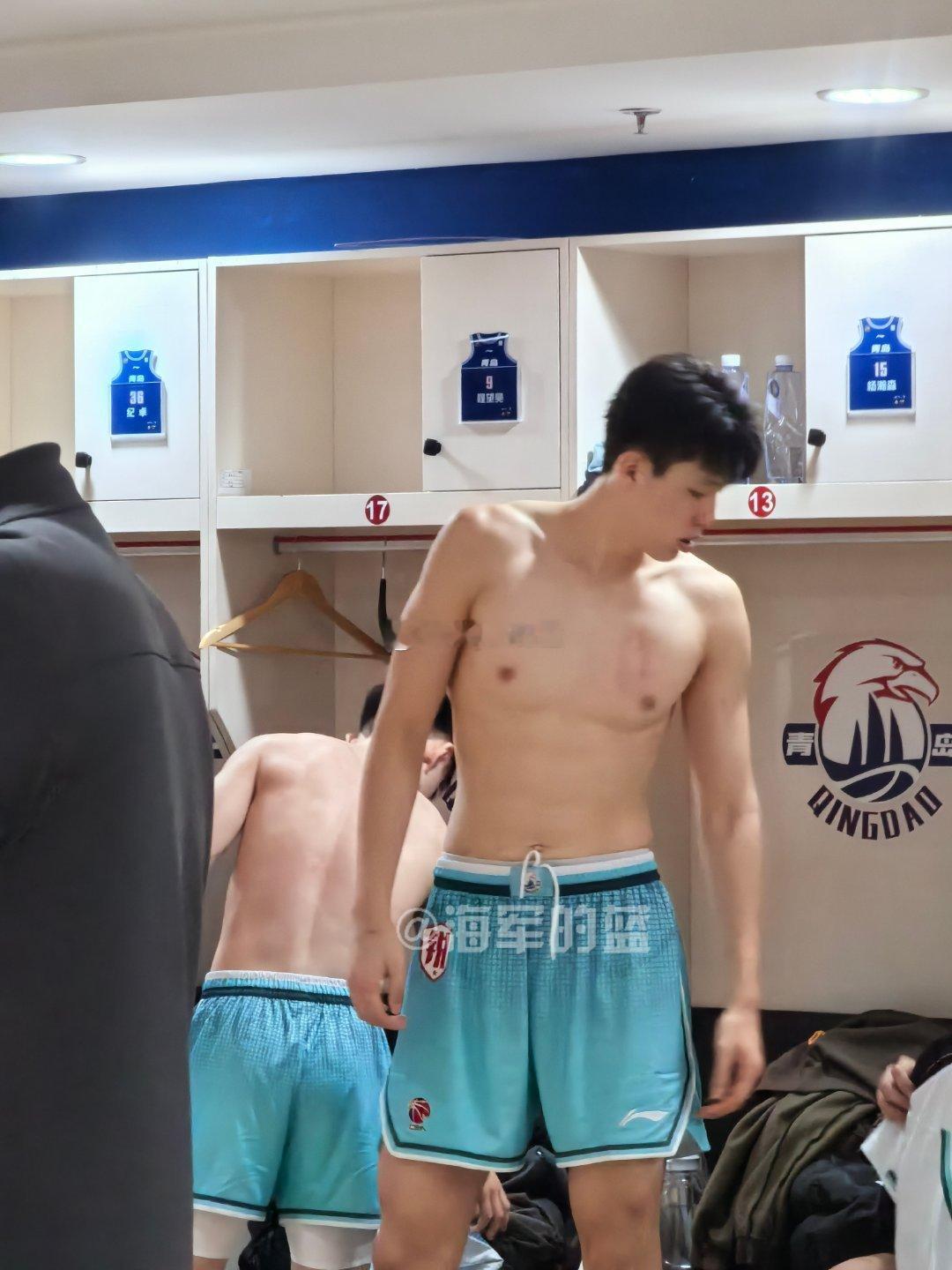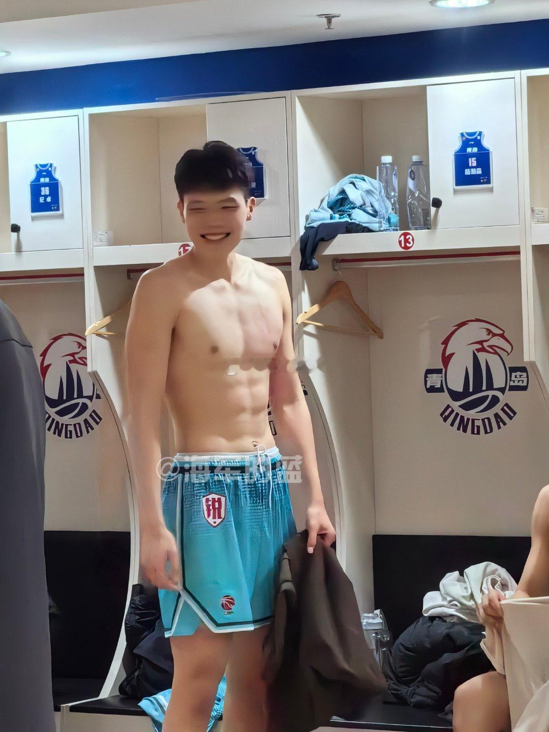 关注我一年以上的朋友应该见过这两张照片,这是我上赛季现场报道青岛队比赛时在更衣室拍的,当时的小杨为了让自己速度更快,力量更强练出了八块腹肌。